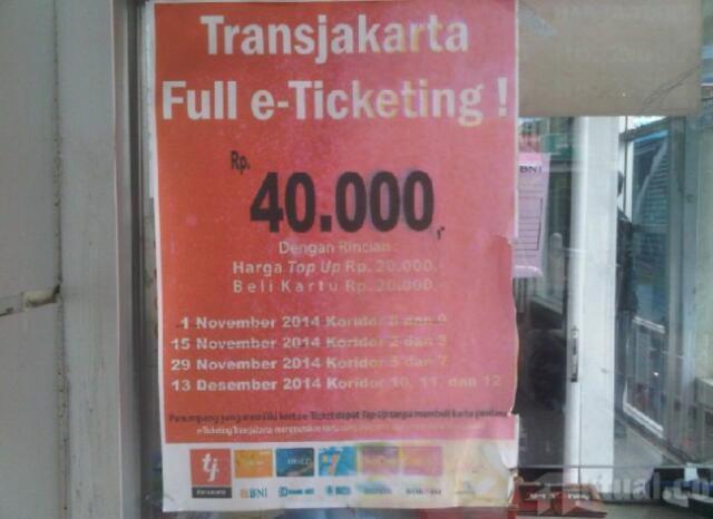 Diketahui pada 1 November 2014 e-Ticketing berlaku di koridor 8 (Lebak Bulus-Harmoni dan koridor 9 (Pinang Ranti – Pluit). Pada 15 November, untuk koridor 2 (Pulogadung – Harmoni) dan koridor 3 (Harmoni – Kalideres).