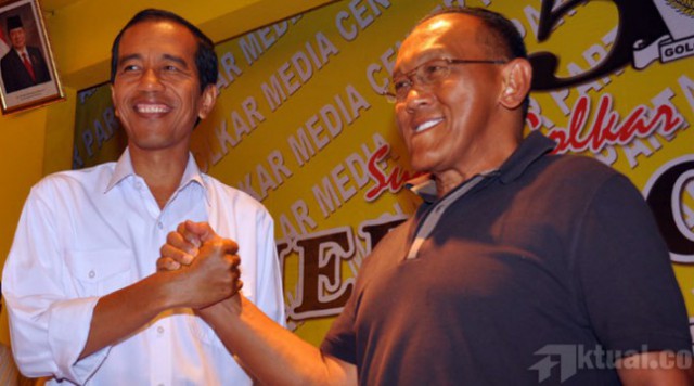 Jakarta, Aktual.co —Ketua umum Partai Golkar hasil Munas Bali, Aburizal Bakrie bertemu Presiden Joko Widodo untuk membicarakan sikap partainya atas kebijakan pemerintah hingga soal konflik internal Golkar. Ical, usai pertemuan itu, menegaskan Golkar tetap berada dalam Koalisi Merah Putih (KMP). “Tetap,” kata Ical usai bertemu dengan Jokowi di istana negara, Jakarta, Selasa (12/1/2014).