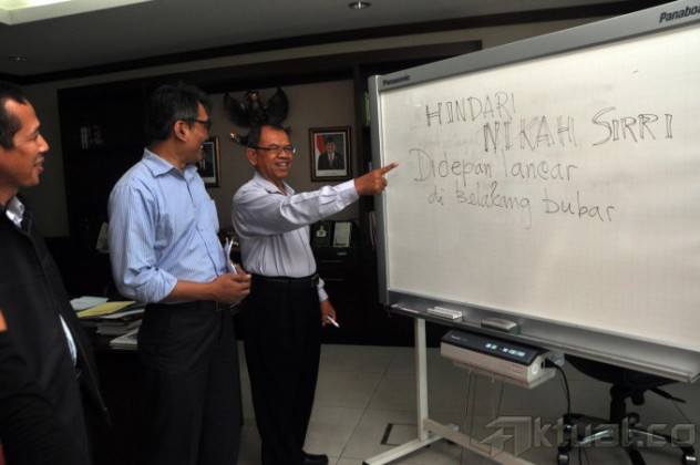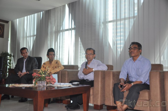 Dirjen Bimas Islam, Machasin (kanan), saat memberikan keterangan di Kantor Kementerian Agama, Jalan MH Thamrin, Jakarta, Rabu (24/12/2014). Machasin menerangkan soal gratifikasi Kantor Urusan Agama (KUA), dan maraknya pelaksanaan nikah sirri di tengah masyarakat akhir-akhir ini.AKTUAL/JUNAIDI MAHBUB