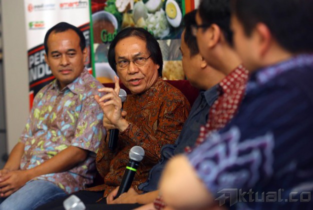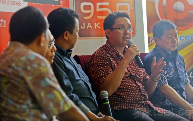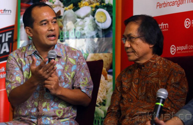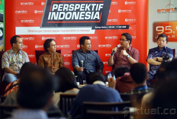 Politisi Partai Persatuan Pembangunan SUharso Monoarfa, Pengamat Ekonomi Politik Berly Martawardaya, Pengamat Pasar Uang Fariak Anwar dan Direktur Eksekutif Populi Center Nico Harjanto, mengulas mengenai melemahnya nilai rupiah terhadap dolar AS saat diskusi dengan tema: “Seberapa Lama Rupiah Melemah” di Jakarta, Sabtu (20/12/2014). Fenomena ini menarik untuk ditelusuri, sebab lemahnya nilai rupiah terhadap dolar mencapai angka yang tertinggi dalam beberapa tahun terakhir. Kurs rupiah berada di level 12.900 per dollar AS. Sementara kurs tengah Bank Indonesia (BI) berada di level 12.900 per dollar AS yang menjadi level terendah sejak Mei 2013, bahkan delapan tahun terakhir. AKTUAL/TINO OKTAVIANO