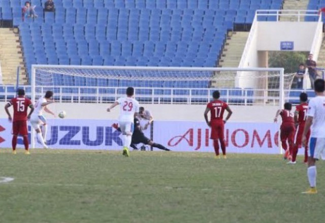 Firman mendapat kartu kuning dan wasit Fahad Jaber dari Qatar menunjuk titik putih, yang dapat dieksekusi oleh Philip Younghusband.
