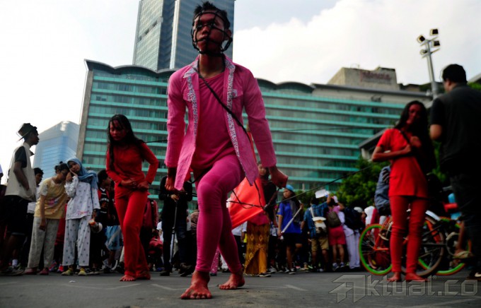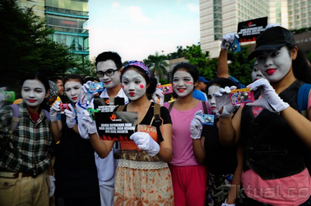 Peserta mengikuti the color run yang digelar oleh CIMB Niaga di Parkir Timur Senayan, Jakarta, Minggu (23/11/2014). CIMB Niaga mendominasikan Rp10 ribu bagi setiap pendaftar The color run, dana itu akan diberikan kepada Alzheimer Indonesia yang bertujuan untuk pengembangan program pendidikan dan pengetahuan mengenai Alzheimer di Tanah air. AKTUAL/TINO OKTAVIANO