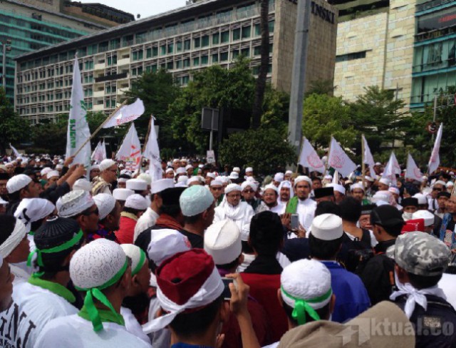 Jakarta, Aktual.co —Massa yang tergabung di Gerakan Masyarakat Jakarta (GMJ) yang akan berunjukrasa di Gedung DPRD DKI dan Balaikota DKI untuk menolak Gubernur DKI Basuki Tjahaja Purnama (Ahok) sudah berdatangan di Bundaran Hotel Indonesia.