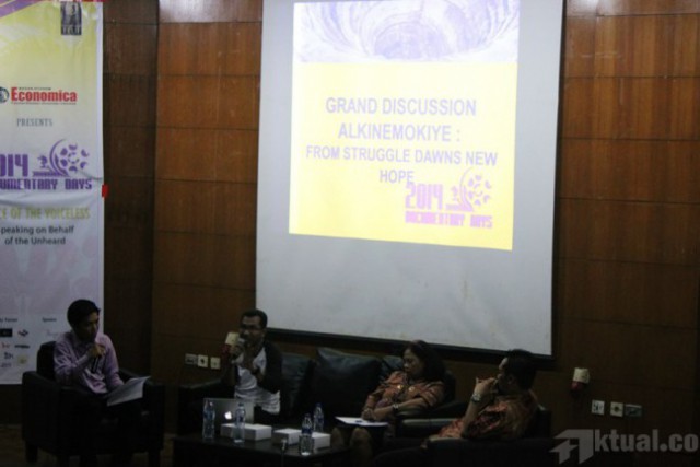 Jakarta, Aktual.co — Sebuah film dokumenter ‘Aikomonikeye’ menceritakan tentang ketidakadilan yang didapat ribuan pegawai Freeport di Papua, ditayangkan di event ‘Documentary Days 2014’ di Auditorium Fakultas Ekonomi Universitas Indonesia (FE UI), Depok, pada Selasa (25/11). Festival film yang mengusung tema ‘Voice of The Voiceless Speaking on Behalf of the Unheard’ tersebut disaksikan oleh puluhan mahasiswa dan masyarakat umum.