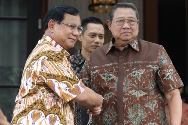 Capres Prabowo Subianto bertemu Ketua Umum Partai Demokrat Susilo Bambang Yudhoyono (SBY) di rumah kediaman SBY dikawasan Mega Kuningan, Jakarta, Jumat (21/12/2018). Agenda pertemuan kedua tokoh nasional itu ialah membahas elektabilitas Prabowo-Sandiaga Uno yang diklaim naik. Selain itu membahas situasi politik nasional, evaluasi separuh babak kampanye. AKTUAL/Tino Oktaviano