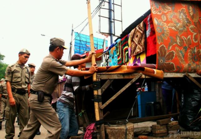 Pembongkaran paksa terpaksa dilakukan oleh puluhan petugas gabungan dari Suku Dinas Kebersihan, Satpol PP, TNI dan Polri, lantaran para pemilik bangunan dianggap ‘ngeyel’ tak mau membongkar sendiri bangunannya.