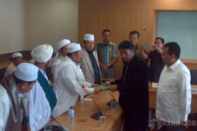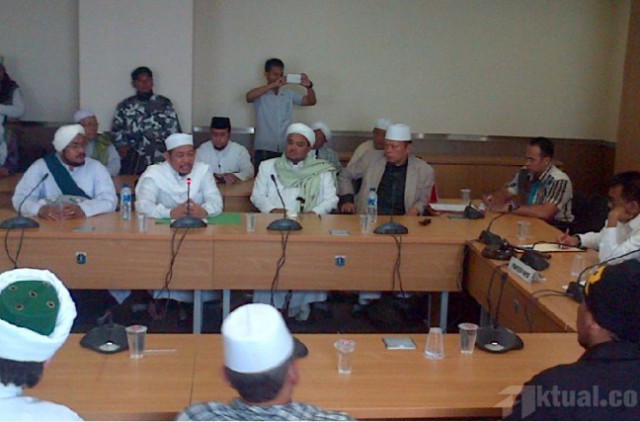 Hal itu disampaikan perwakilan dari massa Gerakan Masyarakat Jakarta (GMJ), KH Fahrur Rozi Ishak, kepada perwakilan dari DPRD DKI yang menemui mereka yakni, Wakil Ketua DPRD DKI M Taufik dan politisi PPP Abraham Lunggana.