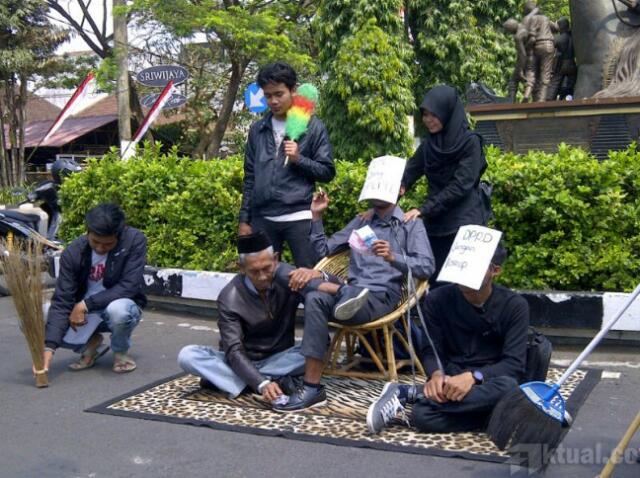 “Kami menuntut agar pak Jokowi dan JK segera merealisasikan janji-janji yang telah mereka umbar kepada rakyat,” sorak pengunjuk rasa.