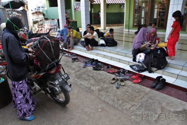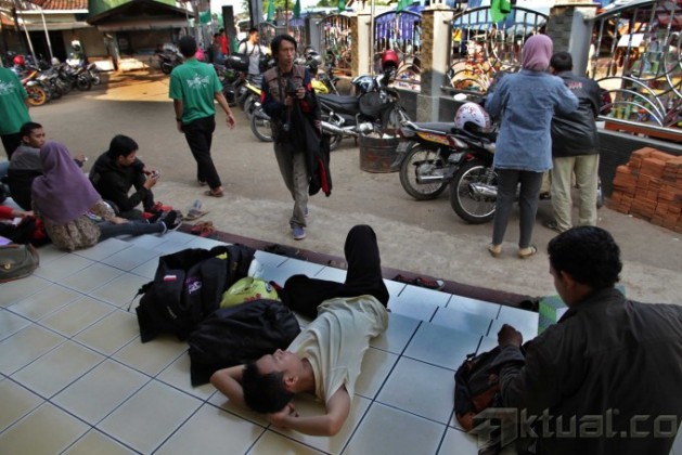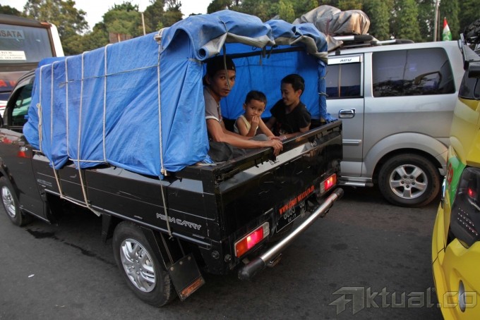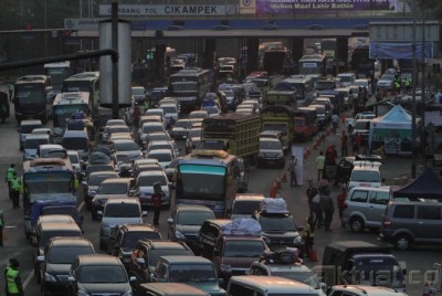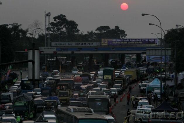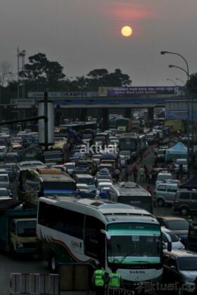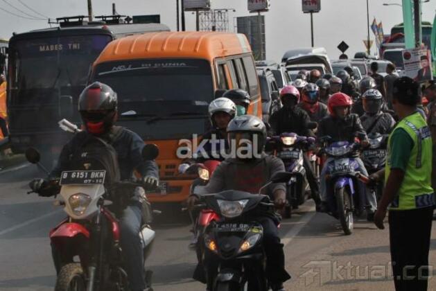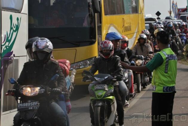 Ratusan pemudik yang menggunakan sepeda motor memadati jalur alternatif Tanjung Pura Karawang, Jawa Barat, Sabtu 3 Agustus 2013. Menteri Perhubungan, EE Mangindaan memprediksi akan terjadi kenaikan pemudik yang menggunakan sepeda motor di seluruh Indonesia. Tujuh puluh persen atau 2,7 juta pemudik akan menggunakan sepeda motor. Aktual/Bagas Triputro