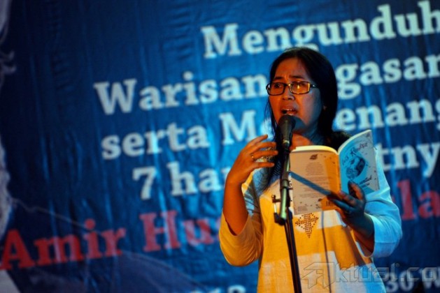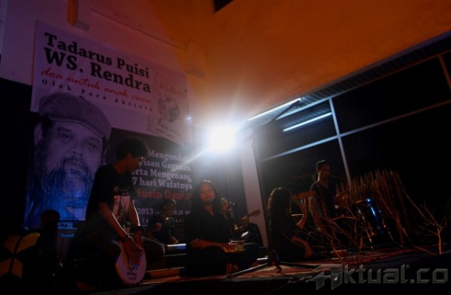 Pementasan puisi-puisi karya WS Rendra bertajuk “Doa untuk anak, cucu di Taman Ismail Marzuki (TIM), Jakarta, Jumat (12/7) malam, dihadiri oleh sejumlah aktivis, acara yang digelar untuk mengenang aktivis almarhum Amir Husin Daulay tersebut menghadirkan aktivis – aktivis senior membacakan puisi, diantaranya Politisi PDI Perjuangan, Trimedya Panjaitan, Ketua Komnas HAM, Siti Noor Laila, Kepala BN2TKI, Jumhur Hidayat, anggota Komisi III DPR dari Fraksi Gerindra, Desmond Junaedi Mahesa dan sejumlah aktivis lainnya. Aktual/Chicharito