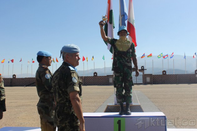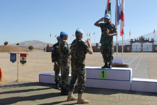 Kontingen Garuda TNI berhasil menjuarai seluruh materi lomba menembak antar Kontingen Negara peserta UNIFIL (United Nation Interim Force In Lebanon) yang diselenggarakan oleh India Batt (India Battalion) pada beberapa waktu lalu, bertempat di lapangan tembak Ebel El Saqi Sektor Timur Lebanon. Dalam lomba yang diikuti oleh berbagai negara peserta TCC (Troops Contribution Country) Kontingen Garuda TNI menurunkan tiga tim terbaiknya yang masing-masing diwakili oleh Satgas FHQSU (Force Head Quarter Support Unit), Satgas Indo FPC (Indonesia Force Protection Commpany) dan Satgas Indobatt (Indonesia Battalion). Dari seluruh kategori yang dilombakan, Kontingen Garuda (Konga) TNI berhasil menyapu bersih semua nomor yang dipertandingkan yaitu The Best Shot Rifle yang diraih oleh Praka Wardono (Indo FPC) demikian juga The Best Shot Pistol diraih oleh Sertu Setiawan (Indo FPC). AKTUAL/PUSPEN TNI