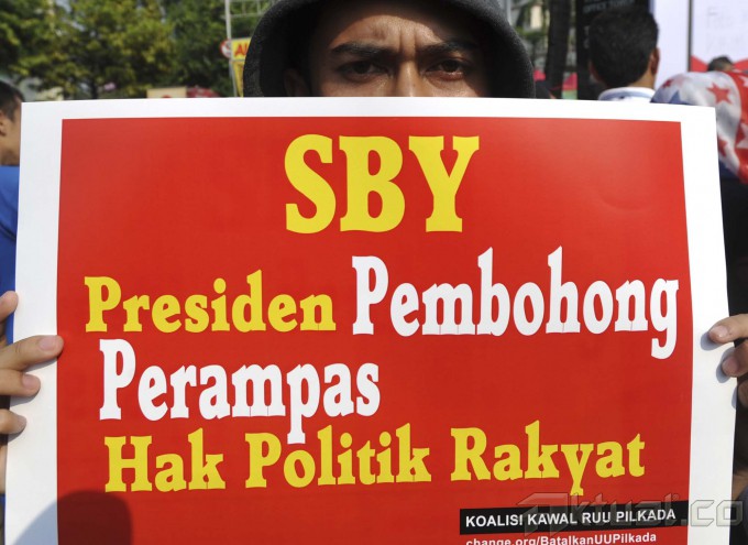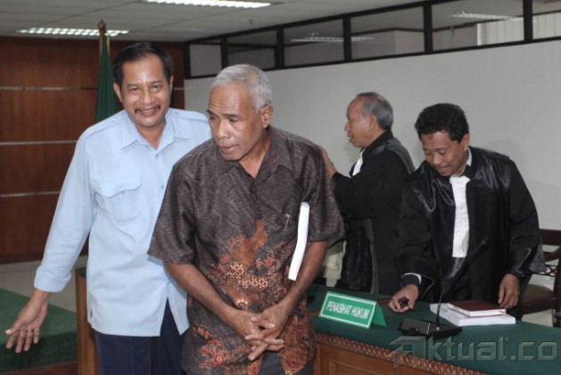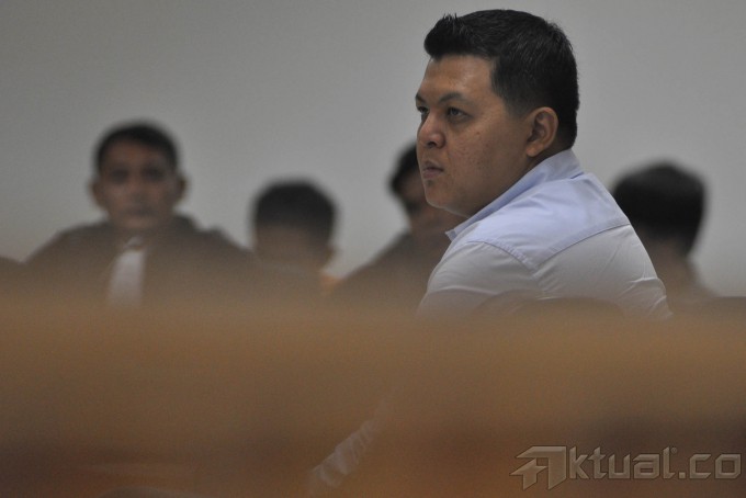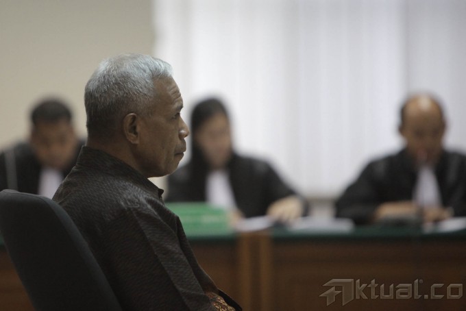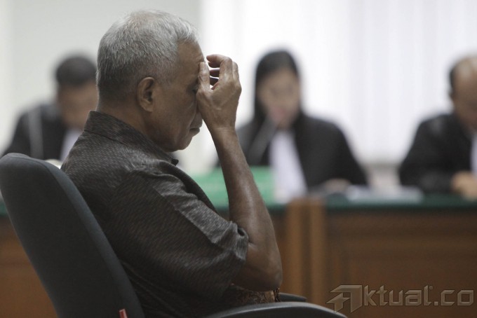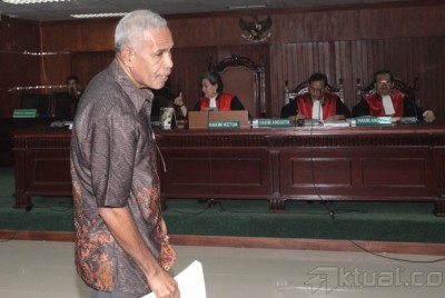 Terdakwa Teddy Renyut saat menjalankan sidang di Tindak Pidana Korupsi (Tipikor), Jakarta, Senin (29/9/2014). Direktur PT Papua Indah Perkasa (PIP) Teddy Renyut dituntut pidana penjara selama empat tahun dan denda Rp 150 juta subsider tiga bulan kurungan.Teddy dinyatakan terbukti menyuap Bupati Biak Numfor, Yesaya Sombuk sebesar 100.000 dolar Singapura terkait rencana proyek pembangunan rekonstruksi tanggul laut (talud) untuk mencegah abrasi pantai dan proyek-proyek lain yang bersumber dari Angggaran Pendapatan dan Belanja Negara Perubahan (APBN-P) 2014 di Biak Numfor. AKTUAL/JUNAIDI MAHBUB