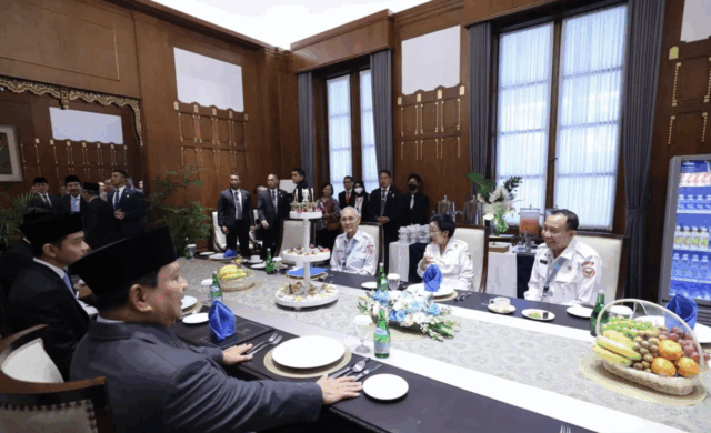 Dalam momen yang jarang tertangkap kamera itu, Prabowo duduk didampingi Menteri Luar Negeri Sugiono dan Menteri Sekretaris Negara Prasetyo Hadi, sementara di sisi kirinya duduk Wakil Presiden Gibran Rakabuming Raka.
