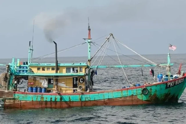 Setelah upaya pengejaran yang intens, kapal ikan asing berbendera Malaysia akhirnya berhasil dihentikan dan diamankan beserta lima orang anak buah kapal (ABK) di dalamnya.