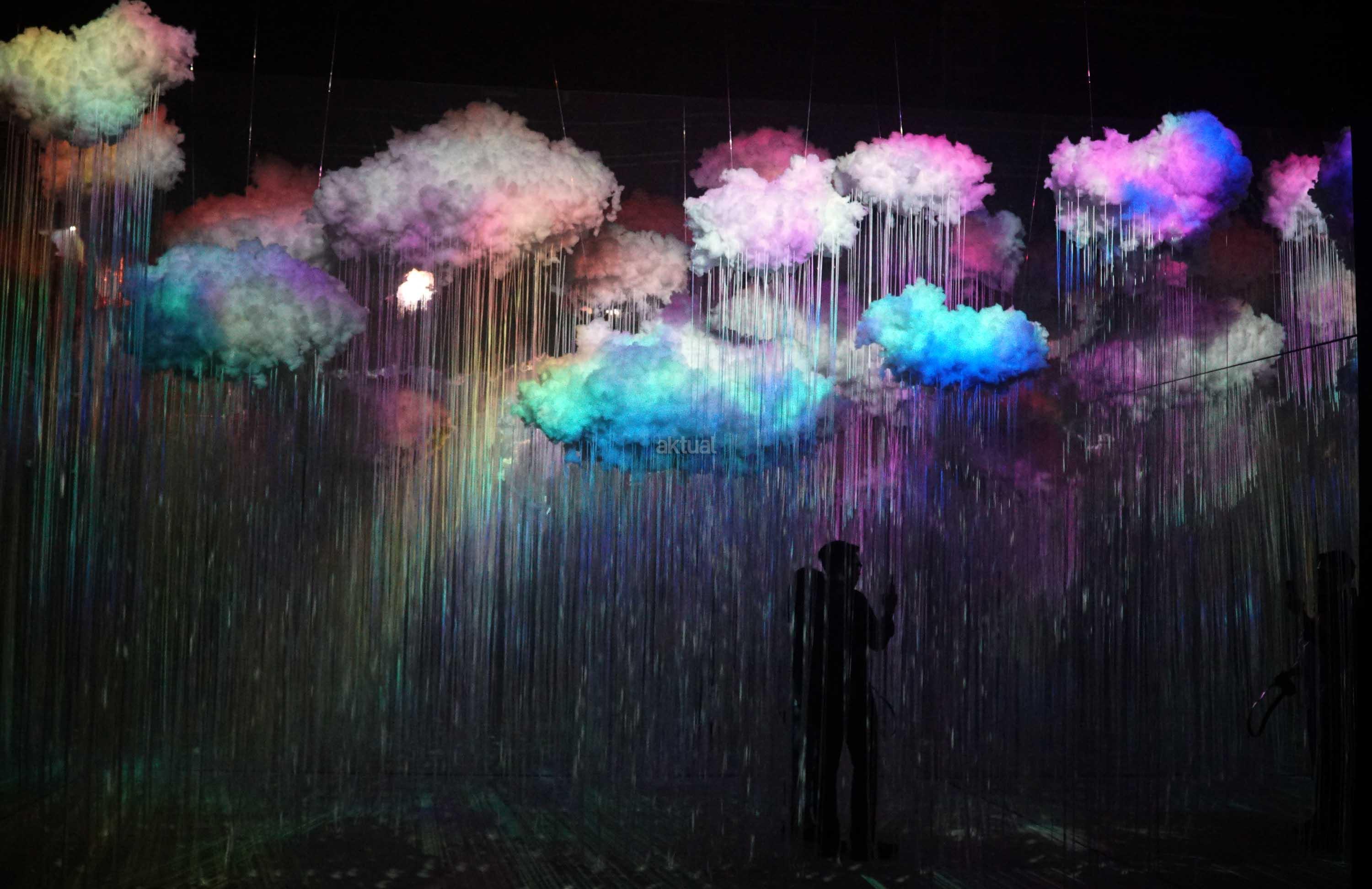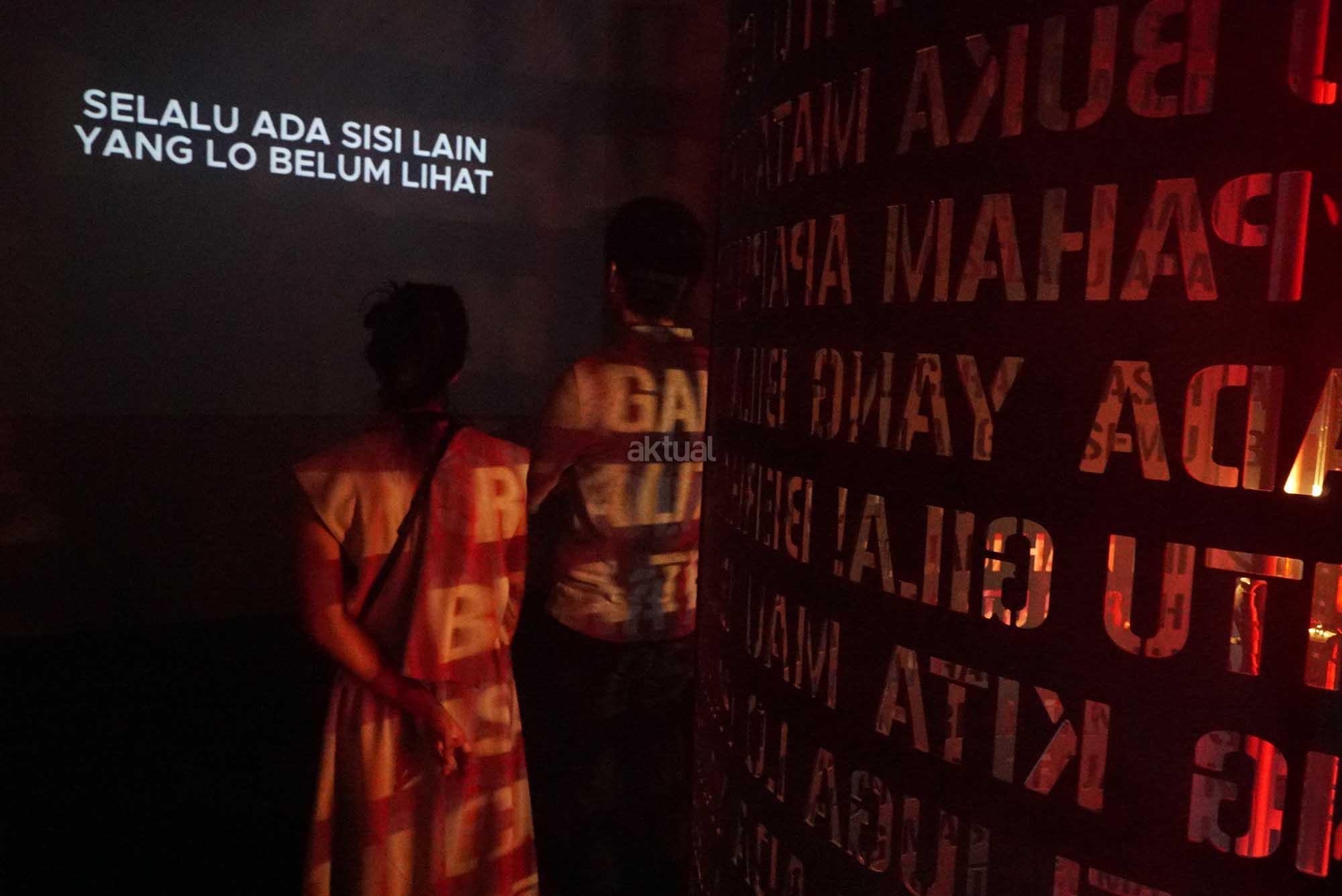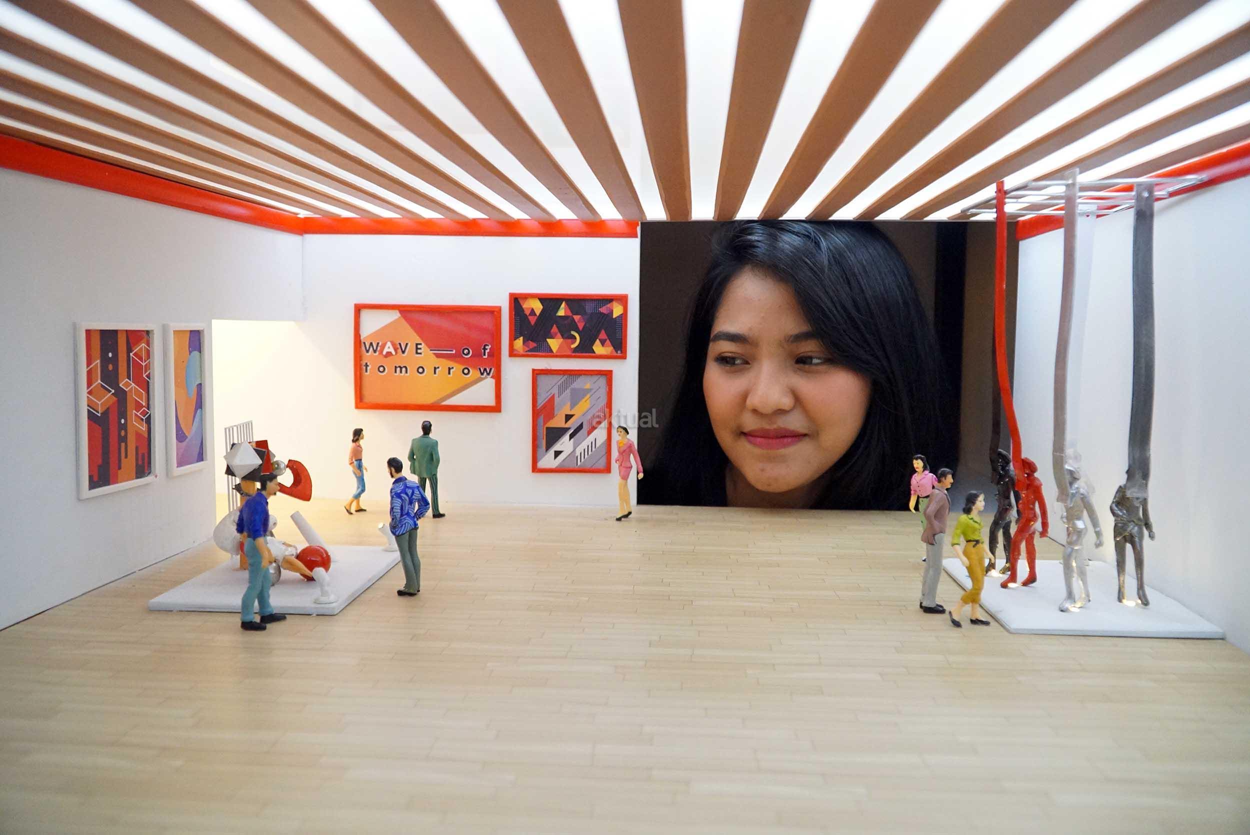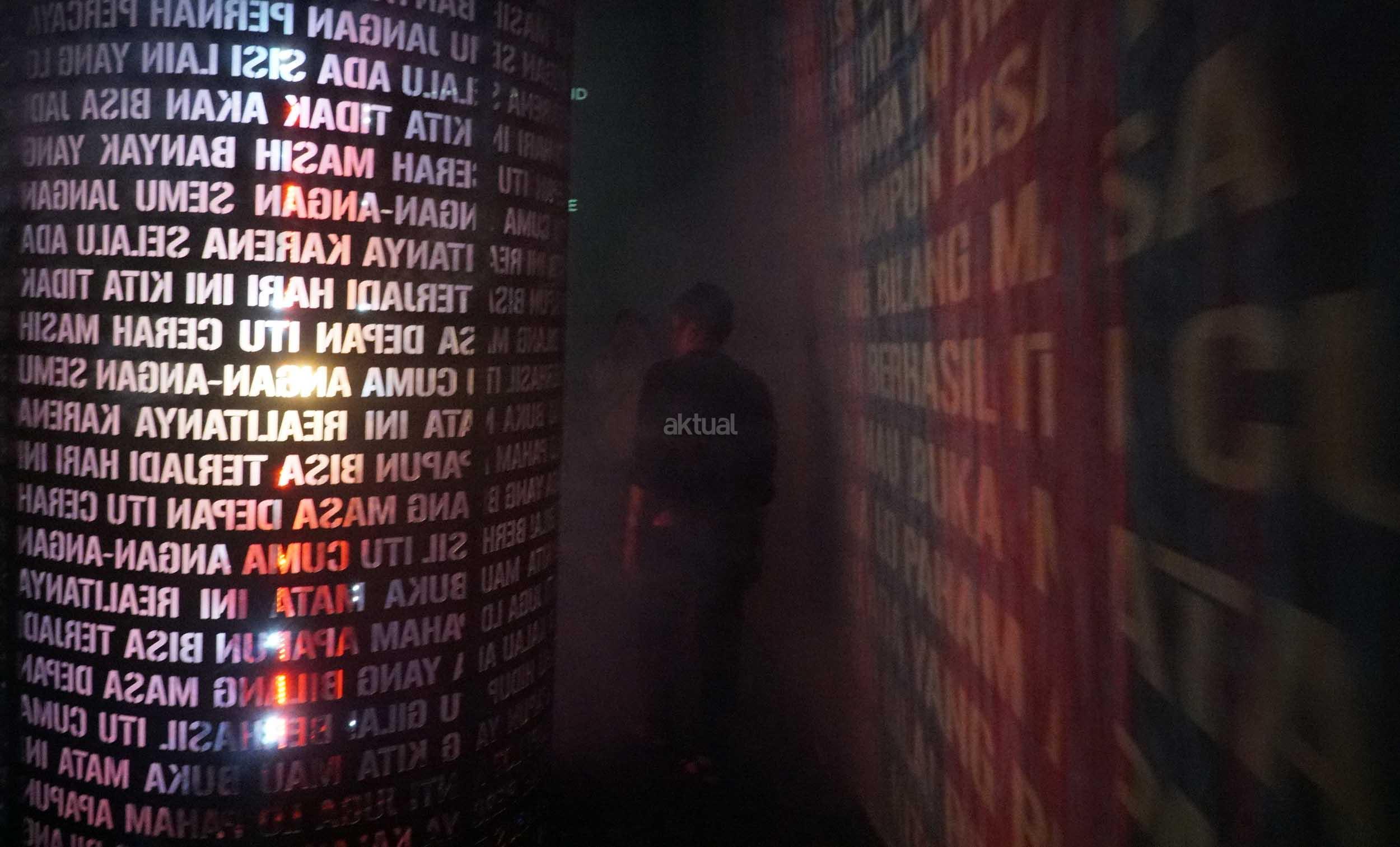 Pengunjung melihat seni instalasi karya sembilan matahari pada acara Jakarta Wave of Tomorrow 2018 di Tribrata Grand Ballroom, Jakarta, Sabtu (20/10). Festival seni instalasi berbasis teknologi digelar pada 19-28 Oktober 2018. AKTUAL/Eko S Hilman