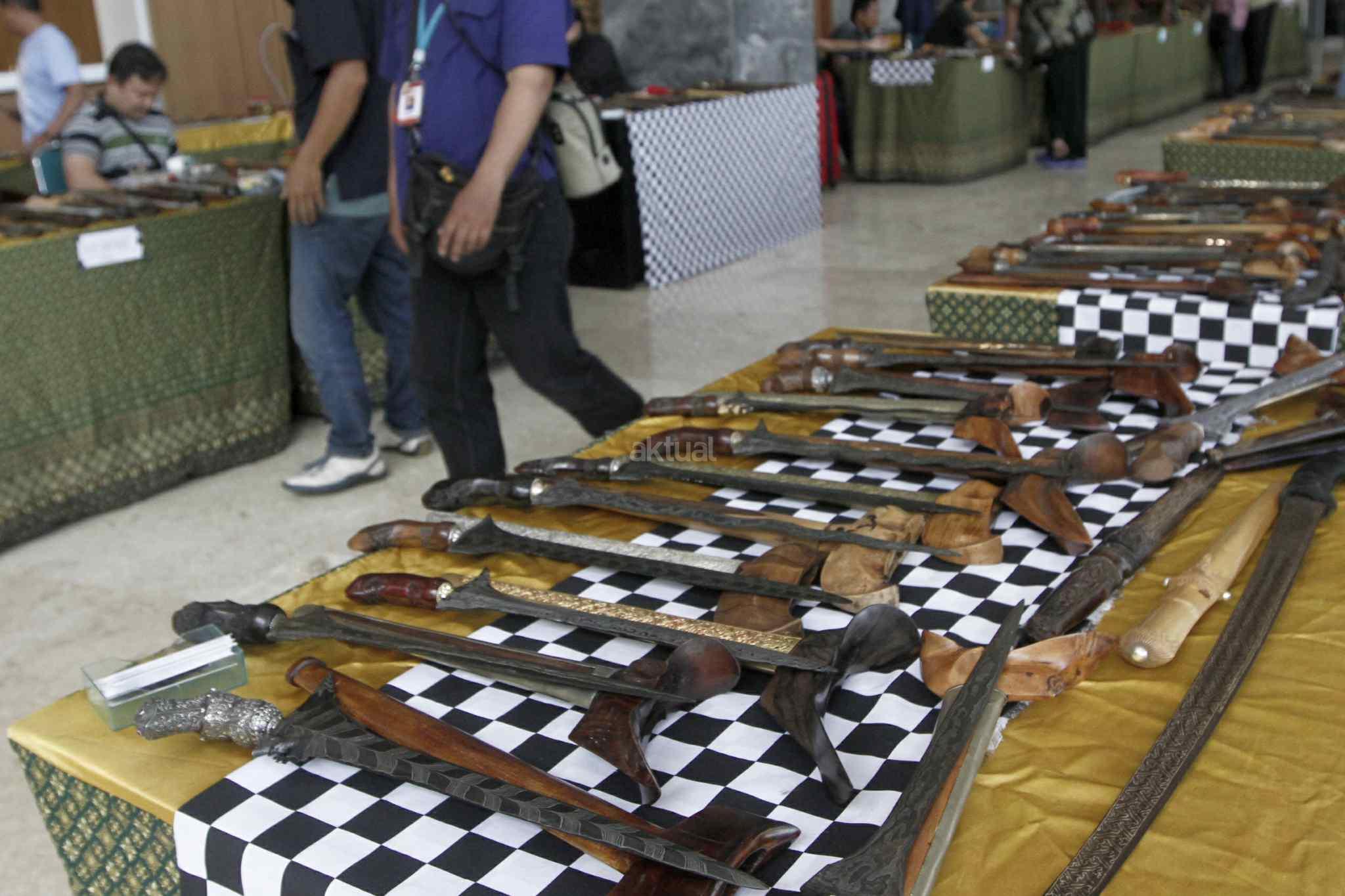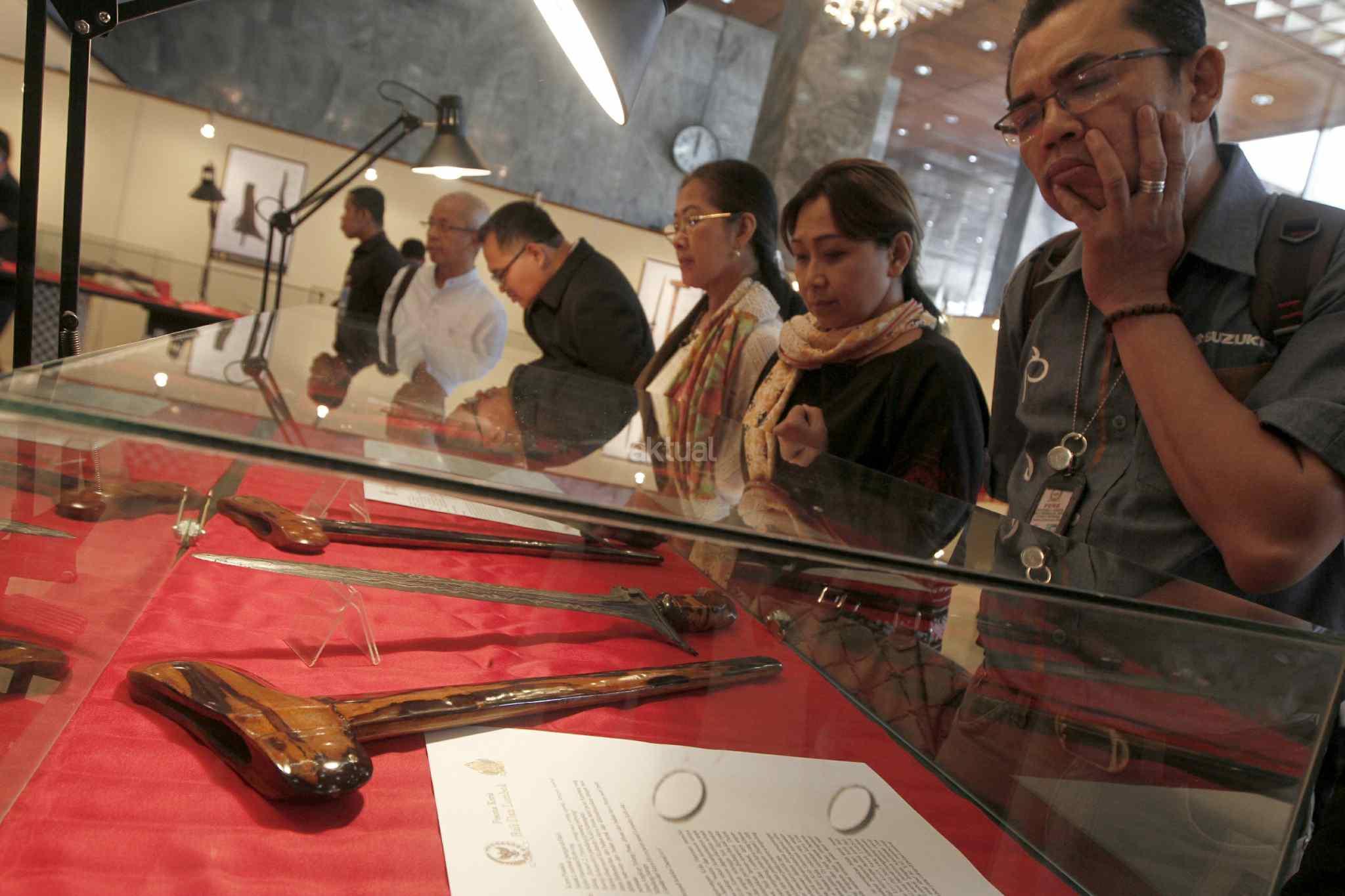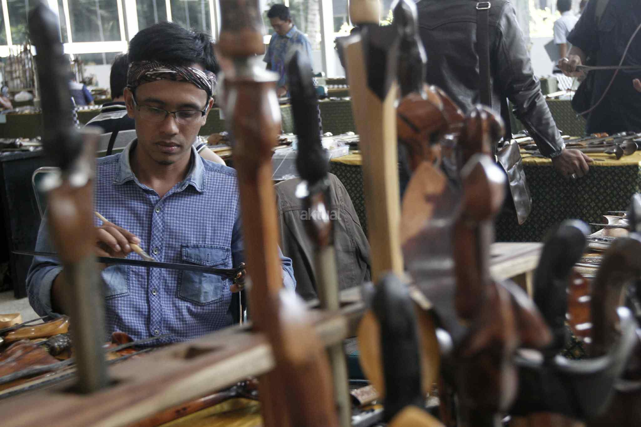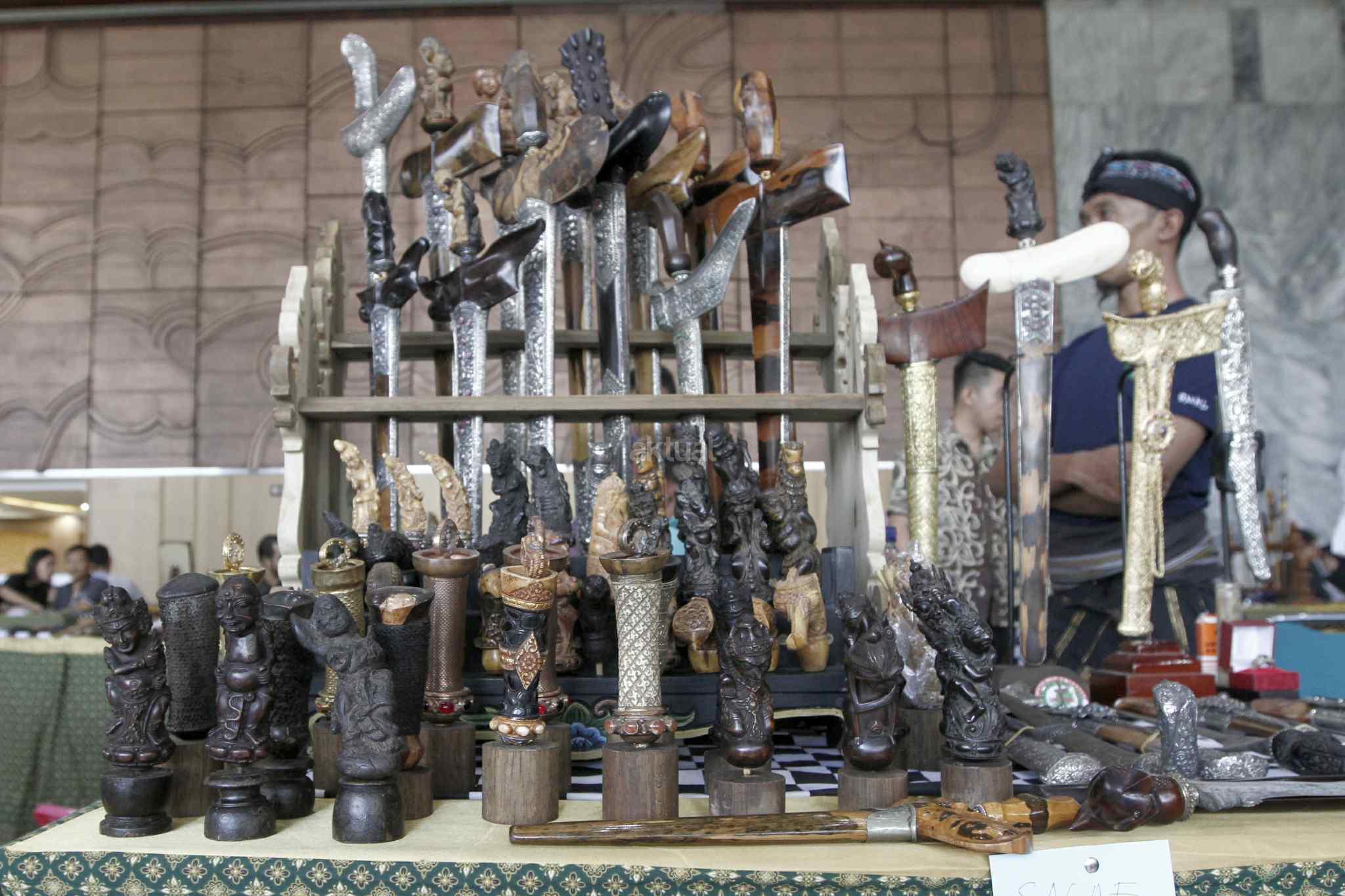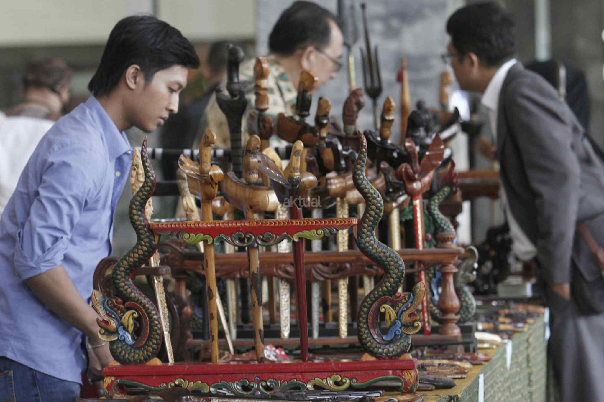 Suasana pameran keris di Kompleks Parlemen, Senayan, Jakarta, Rabu (15/3/2017). DPR bersama komunitas dari Bali dan Lombok gelar pameran keris hingga 17 Maret 2017 mendatang. AKTUAL/Tino Oktaviano