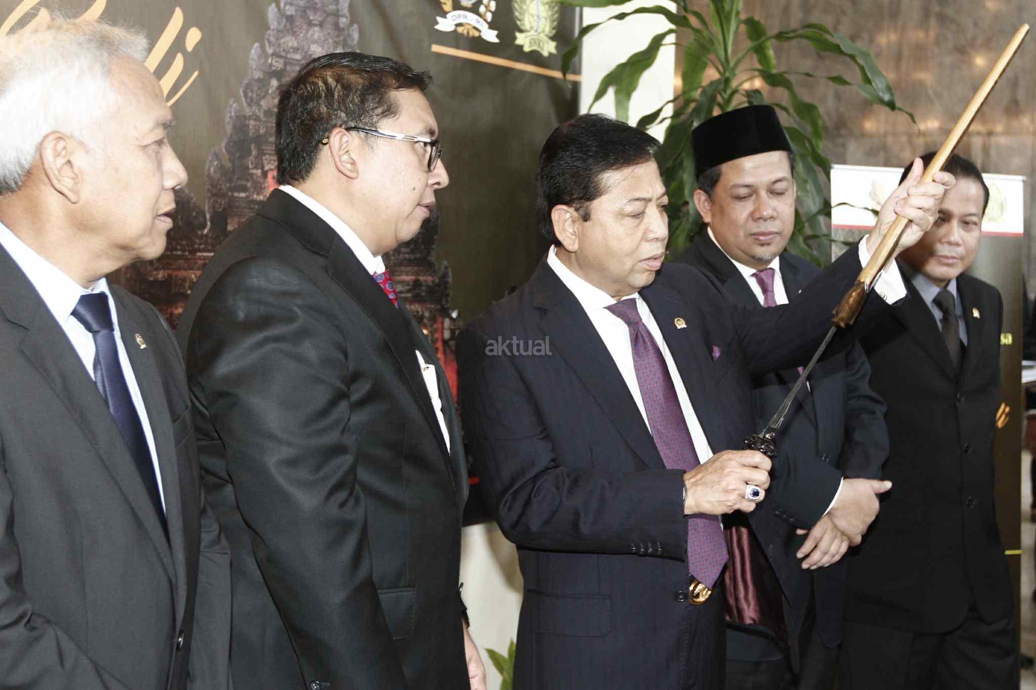 Ketua DPR Setya Novanto membuka pameran keris di Kompleks Parlemen, Senayan, Jakarta, Rabu (15/3/2017). DPR bersama komunitas dari Bali dan Lombok gelar pameran keris hingga 17 Maret 2017 mendatang. AKTUAL/Tino Oktaviano
