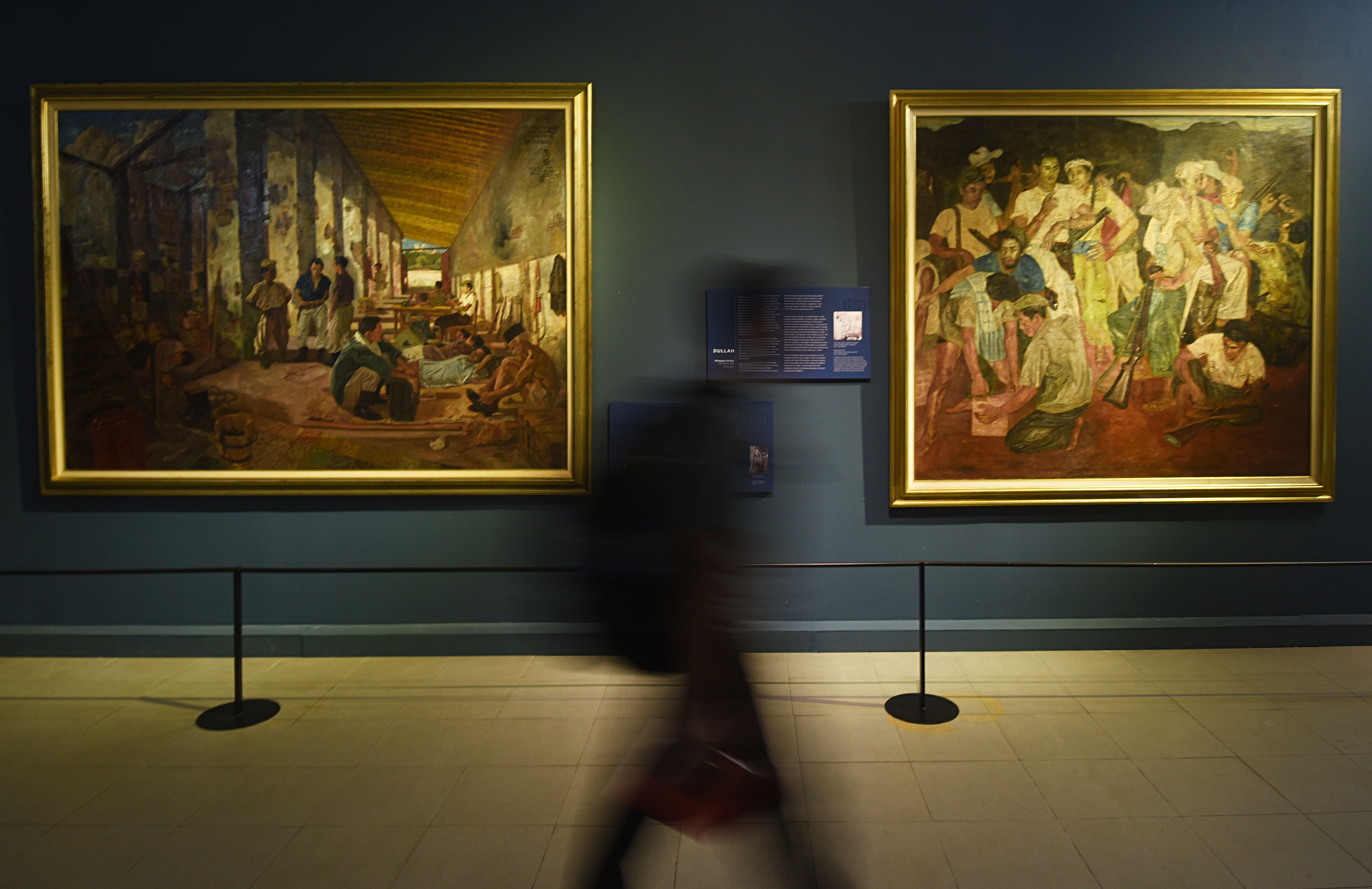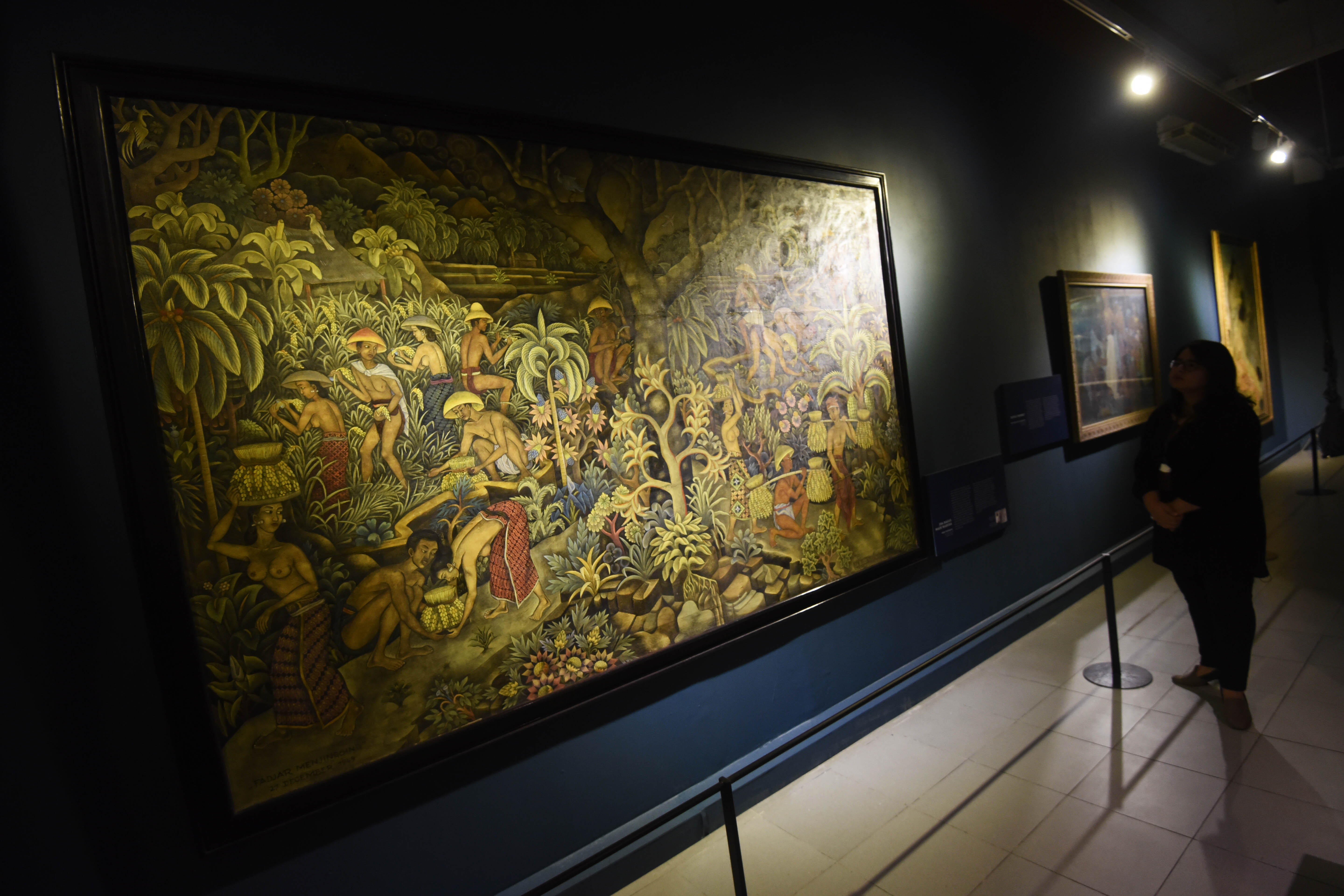 Pengunjung memperhatikan lukisan koleksi istana di Galeri Nasional, Jakarta, Senin (1/8). Pameran bertajuk 17|71 Goresan Juang Kemerdekaan itu menampilkan 28 lukisan koleksi Istana di Indonesia berlangsung dalam rangka memeriahkan HUT Kemerdekaan RI ke-71. ANTARA FOTO/Akbar Nugroho Gumay/foc/16.
