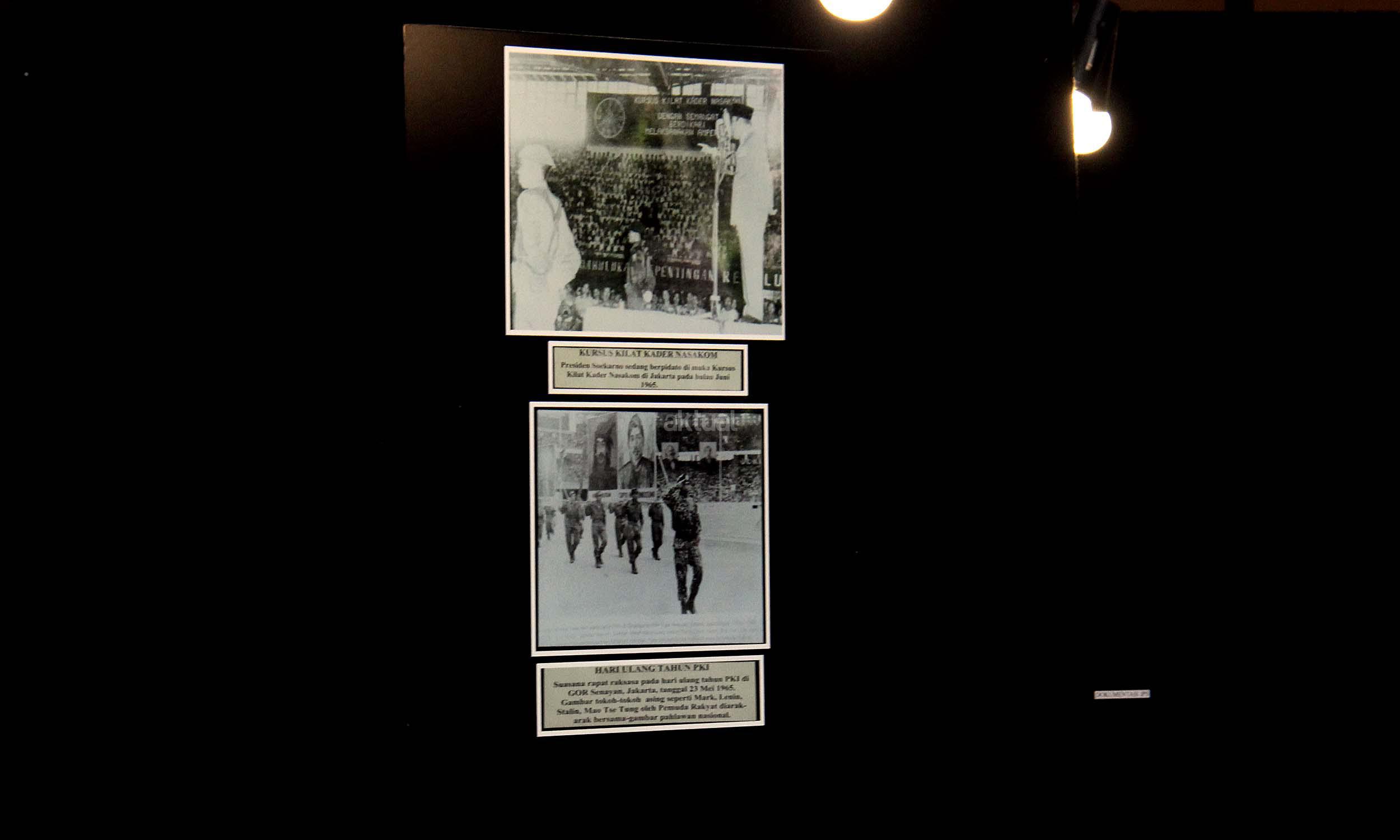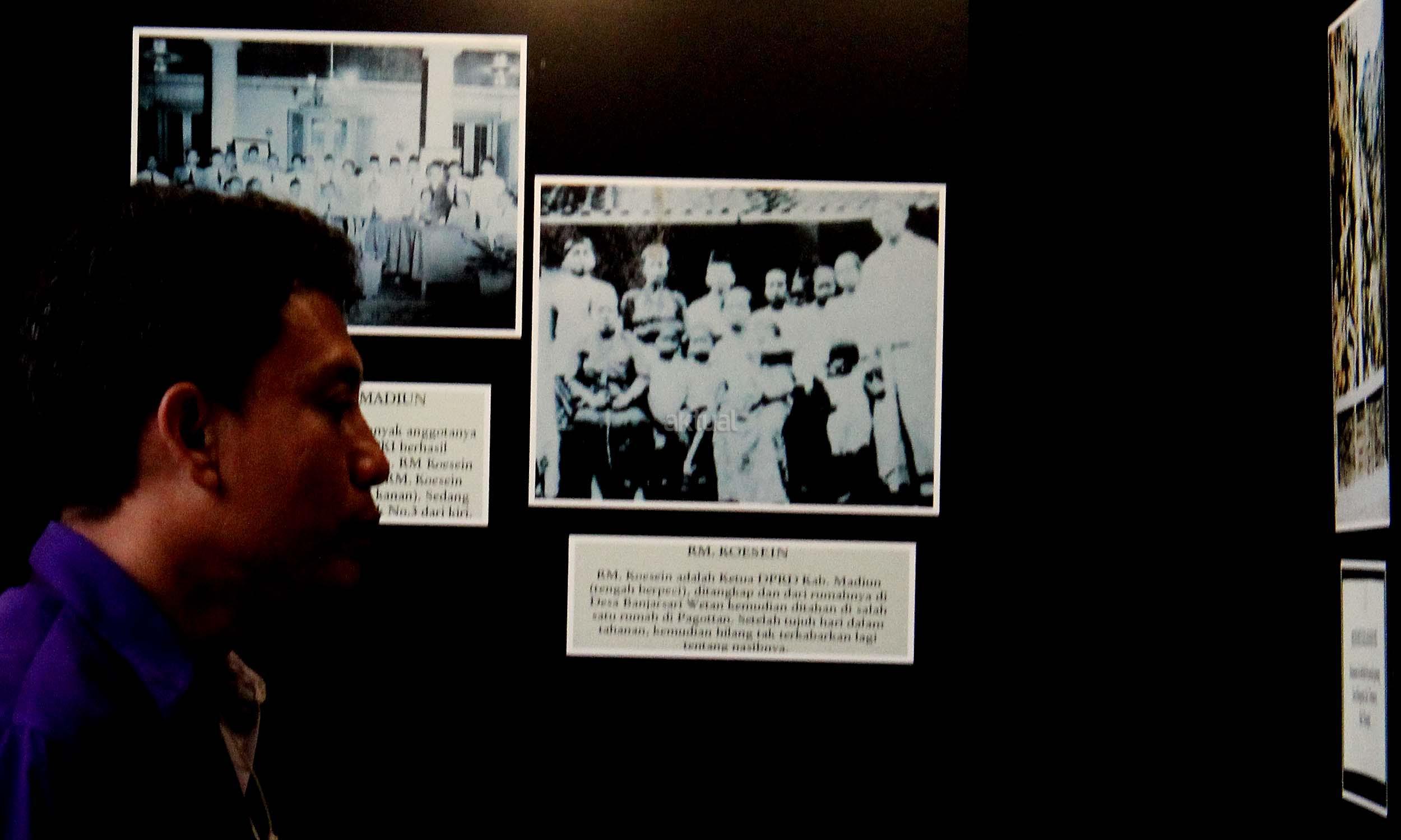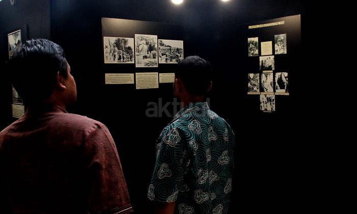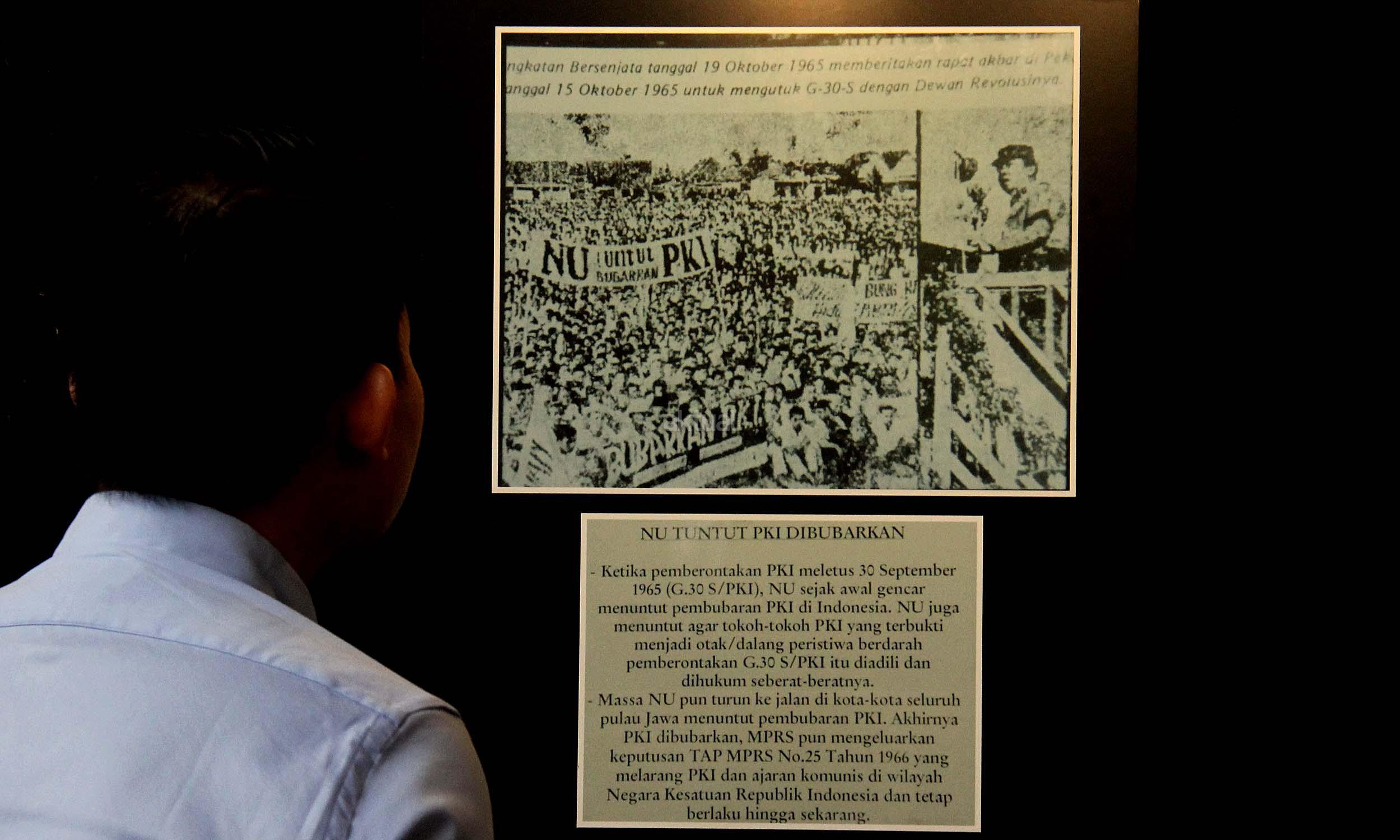 Para pengunjung saat melihat pameran foto saat acara simposium Mengamankan Pancasila dari Ancaman Kebangkitan PKI dan Ideologi Lain di Balai Kartini, Jakarta, Rabu (1/6/2016). Selain acara simposium Mengamankan Pancasila dari Ancaman Kebangkitan PKI dan Ideologi Lain ada pameran foto yang dimana kekejaman PKI dan pemberontakan PKI di masa lalu.