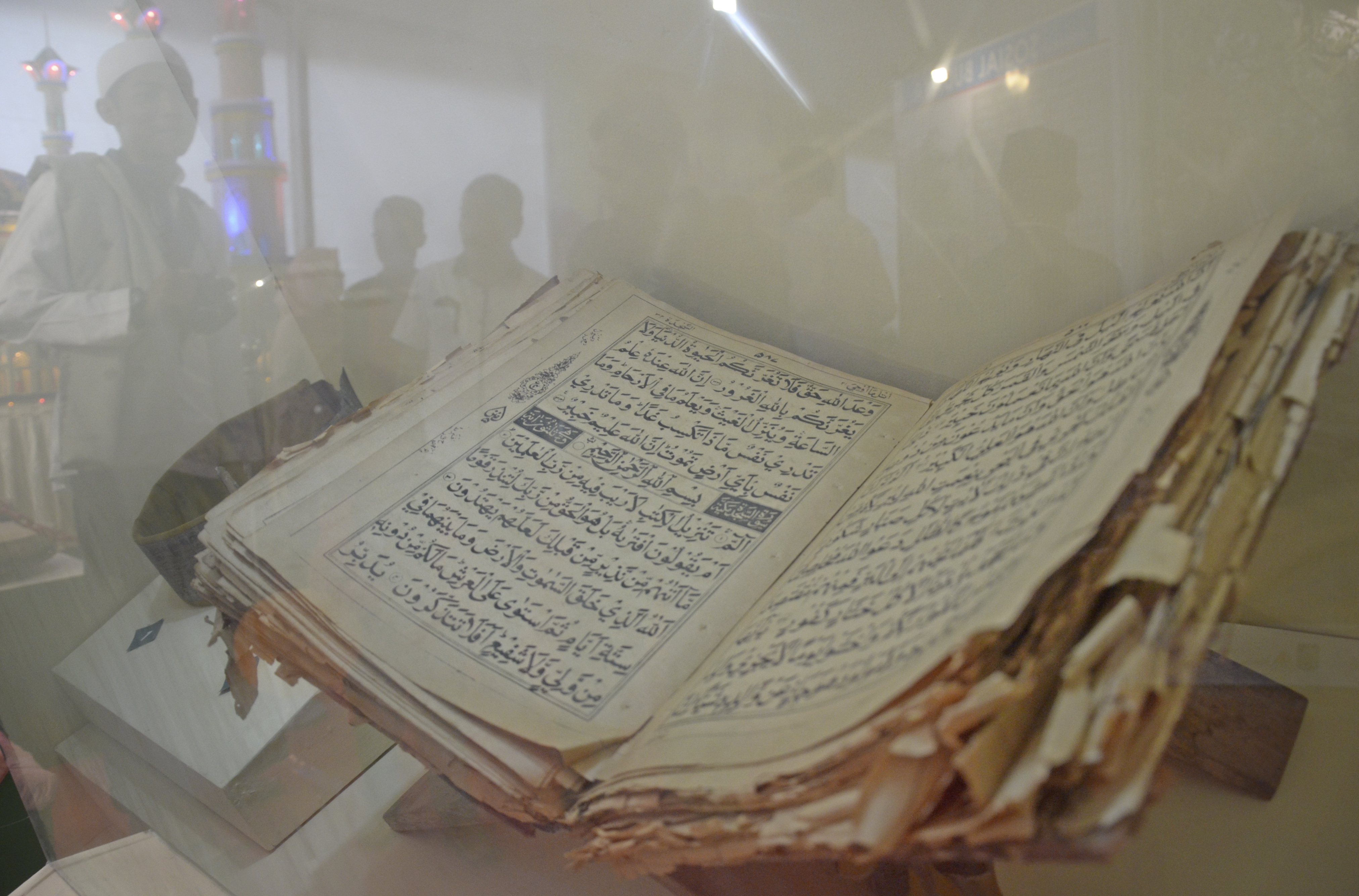 Sejumlah pengunjung melihat Al Quran bersejarah peninggalan Kesultanan Bima yang dipamerkan di