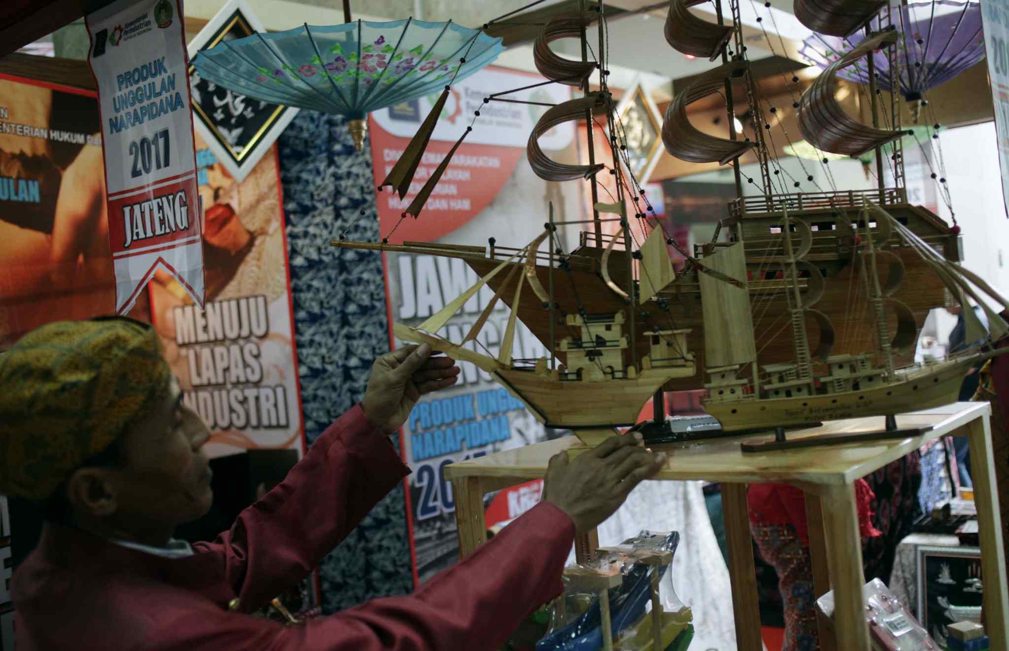 Warga Binaan Lapas (Lembaga Pemasyarakatan) dari berbagai daerah menunjukan hasil karya cantik dan apik yang berkualitas ekspor saat acara Pameran Produk Unggulan Narapidana (PUN) 2017, “From Nothing to Something” di Plasa Pameran Industri Kementerian Perindustrian, Jakarta, Selasa (4/4/2017). Direktorat Jenderal Pemasyarakatan menggelar Pameran Produk Unggulan Narapidana (PUN) 2017 dalam rangka Memperingati Hari Ulang Tahun Pemasyarakatanke 53 tanggal 27 April 2017. AKTUAL/Munzir