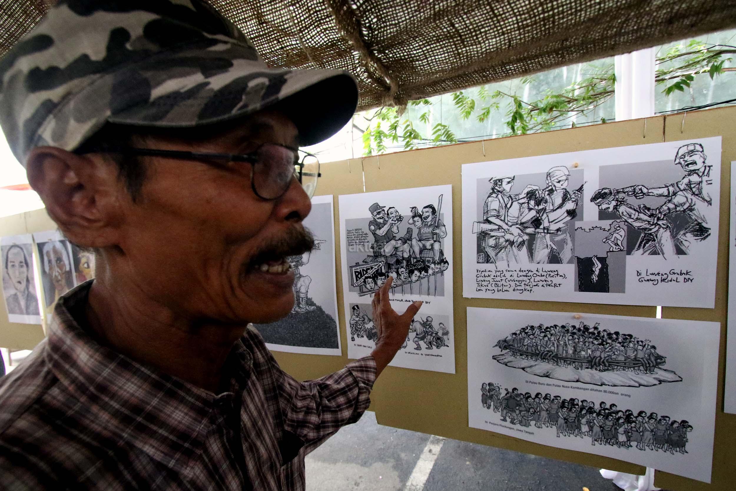Sejumlah Penyintas Tragedi 1965 melihat pameran Repro Lorong Genosida 65-66 di Kantor Komnas Ham, Jakarta, Minggu (19/3/2017). Mereka mendesak Komnasham melakukan penyelidikan lanjutan berdasar pada putusan dan rekomendasi International People’s Tribunal (IPT) di Den Haag pada 2015. AKTUAL/Munzir