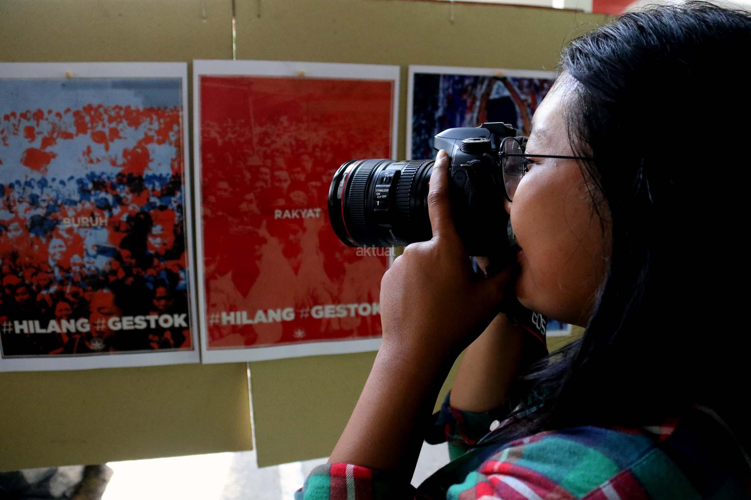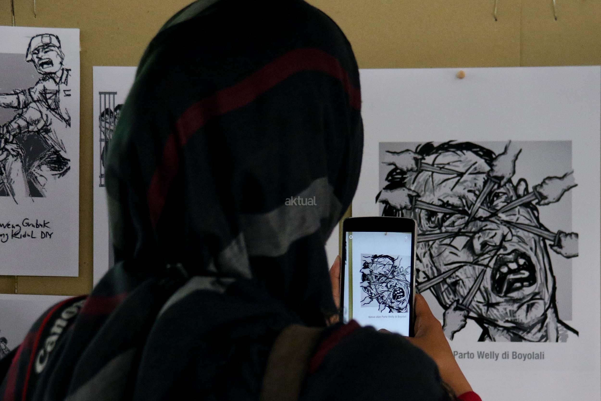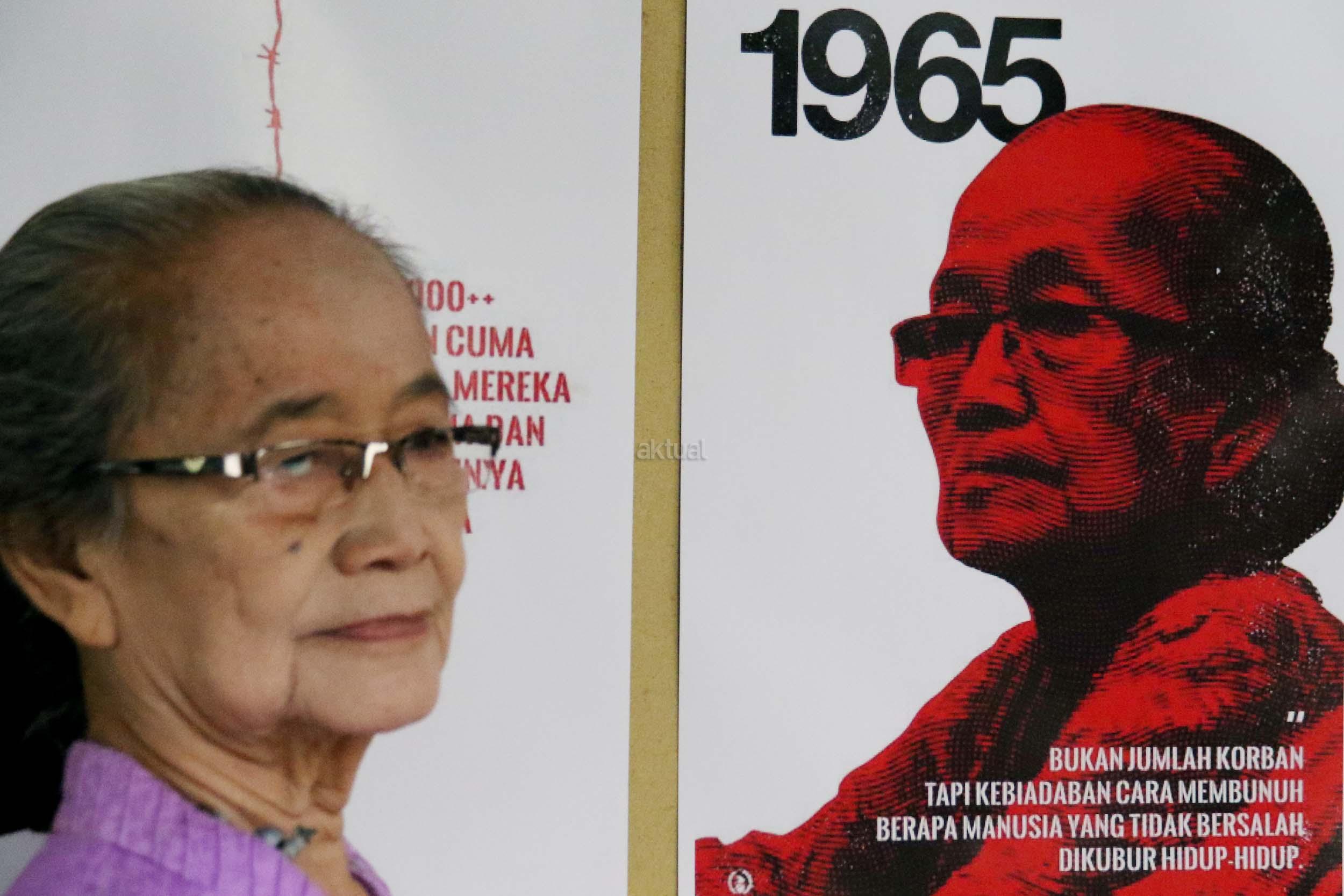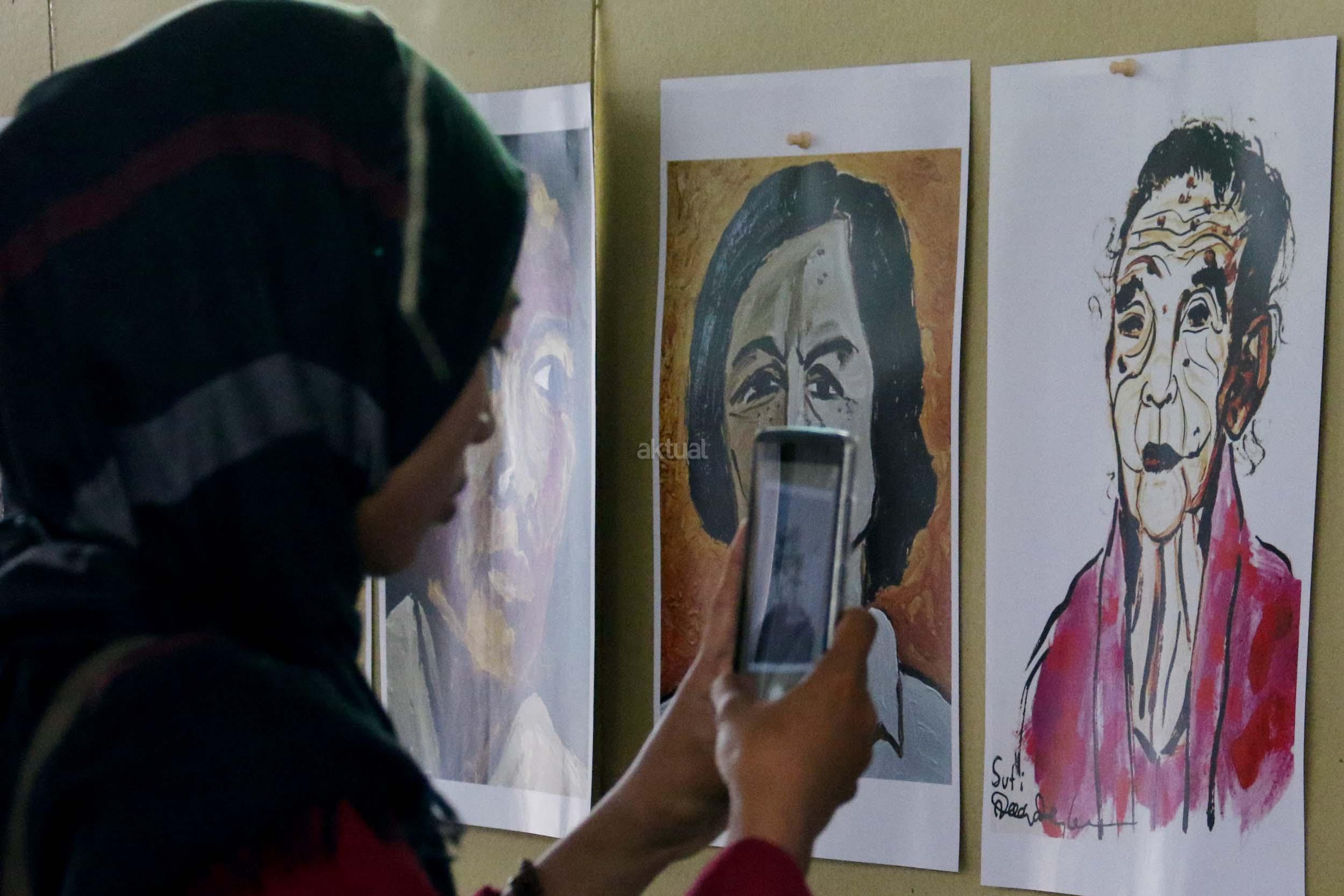 Penyintas Tragedi 1965 Sri Sulityawati melihat pameran Repro Lorong Genosida 65-66 di Kantor Komnas Ham, Jakarta, Minggu (19/3). Mereka mendesak Komnas Ham melakukan penyelidikan lanjutan berdasar pada putusan dan rekomendasi International People’s Tribunal (IPT) di Den Haag pada 2015. AKTUAL/Munzir