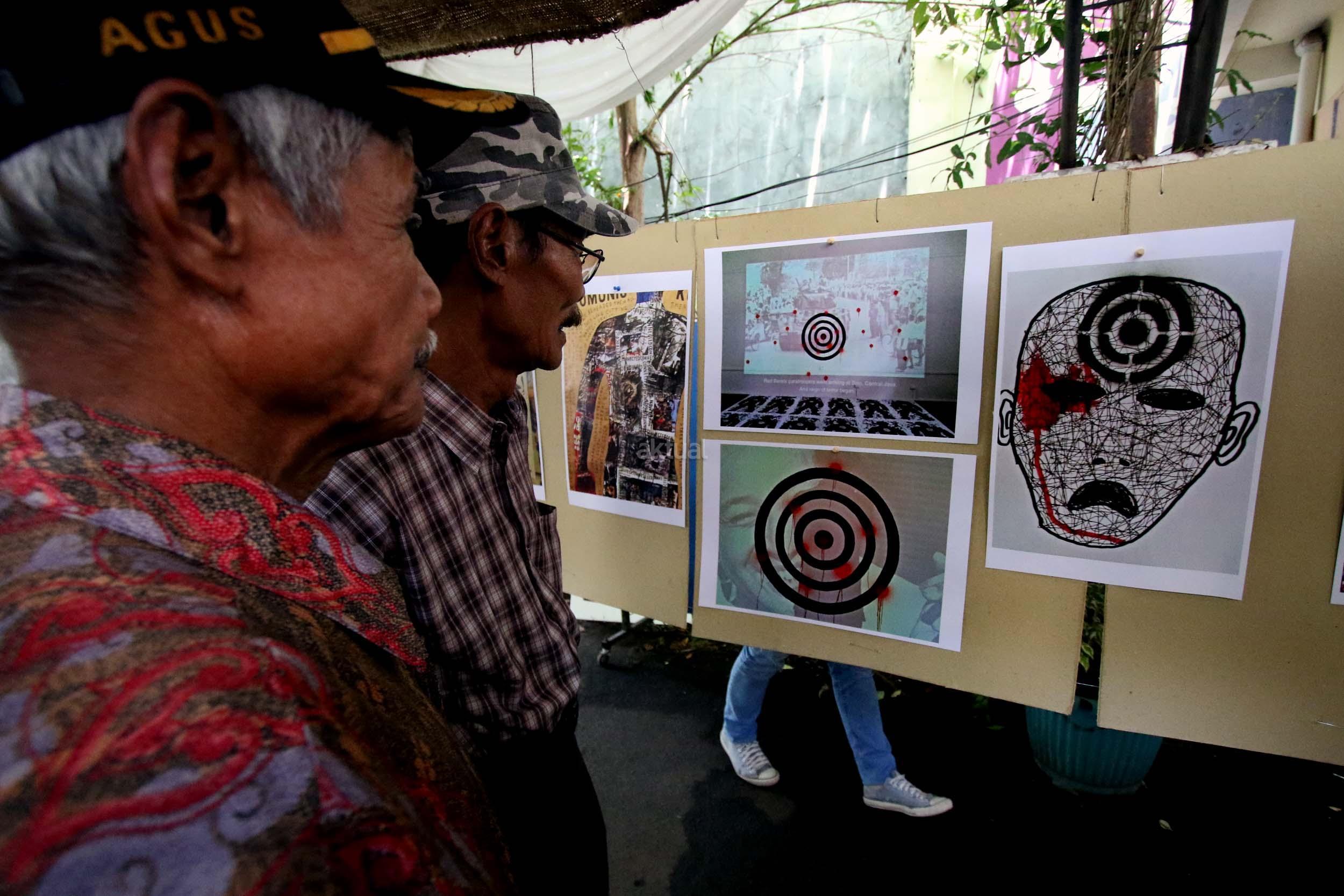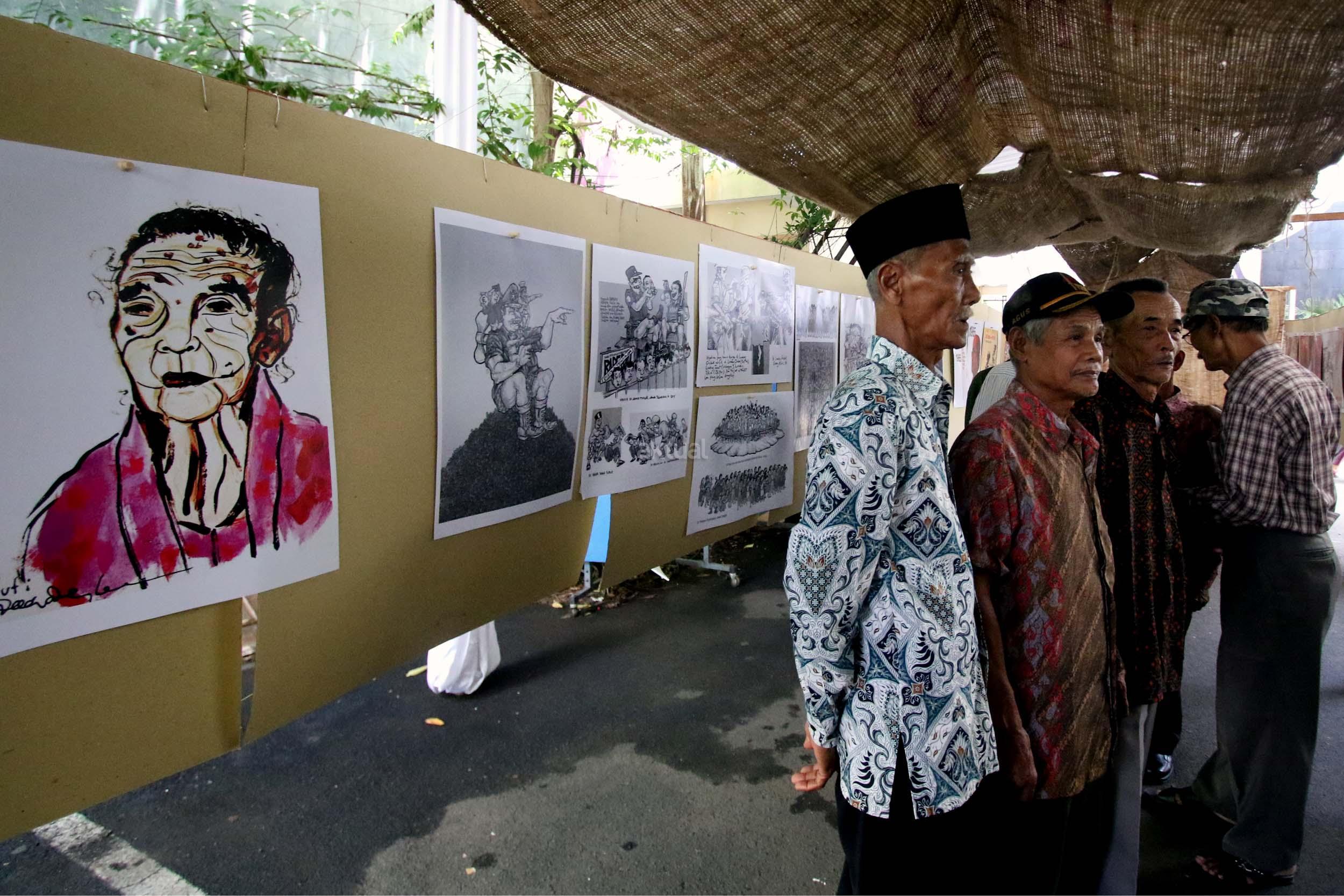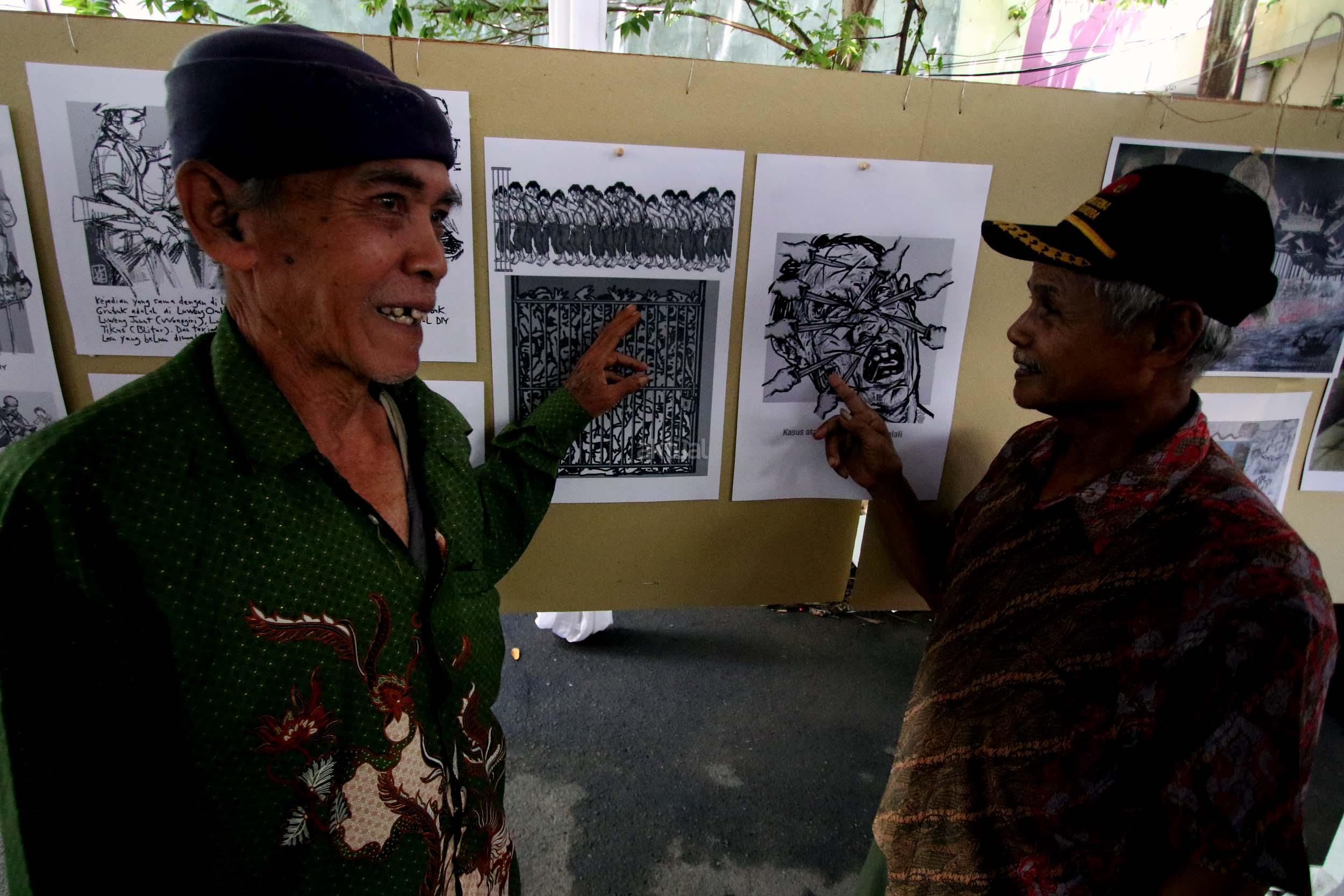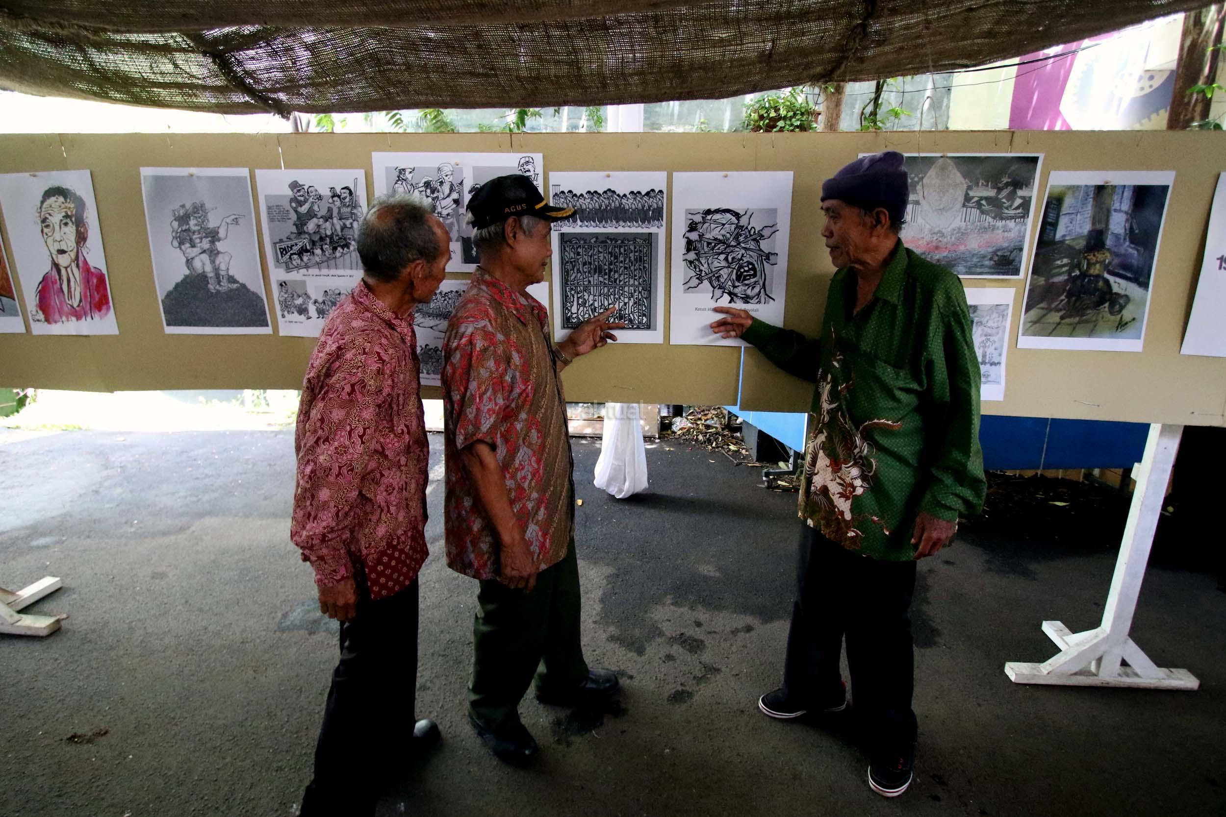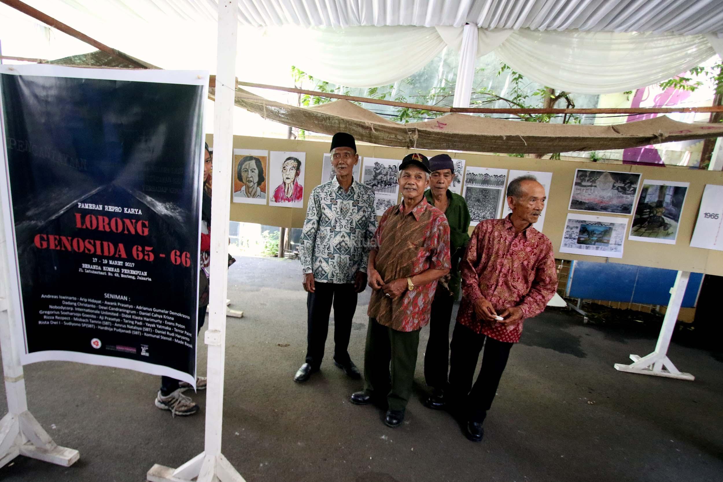 Sejumlah Penyintas Tragedi 1965 melihat pameran Repro Lorong Genosida 65-66 di Kantor Komnas Ham, Jakarta, Minggu (19/3/2017). Mereka mendesak Komnas Ham melakukan penyelidikan lanjutan berdasar pada putusan dan rekomendasi International People’s Tribunal (IPT) di Den Haag pada 2015. AKTUAL/Munzir