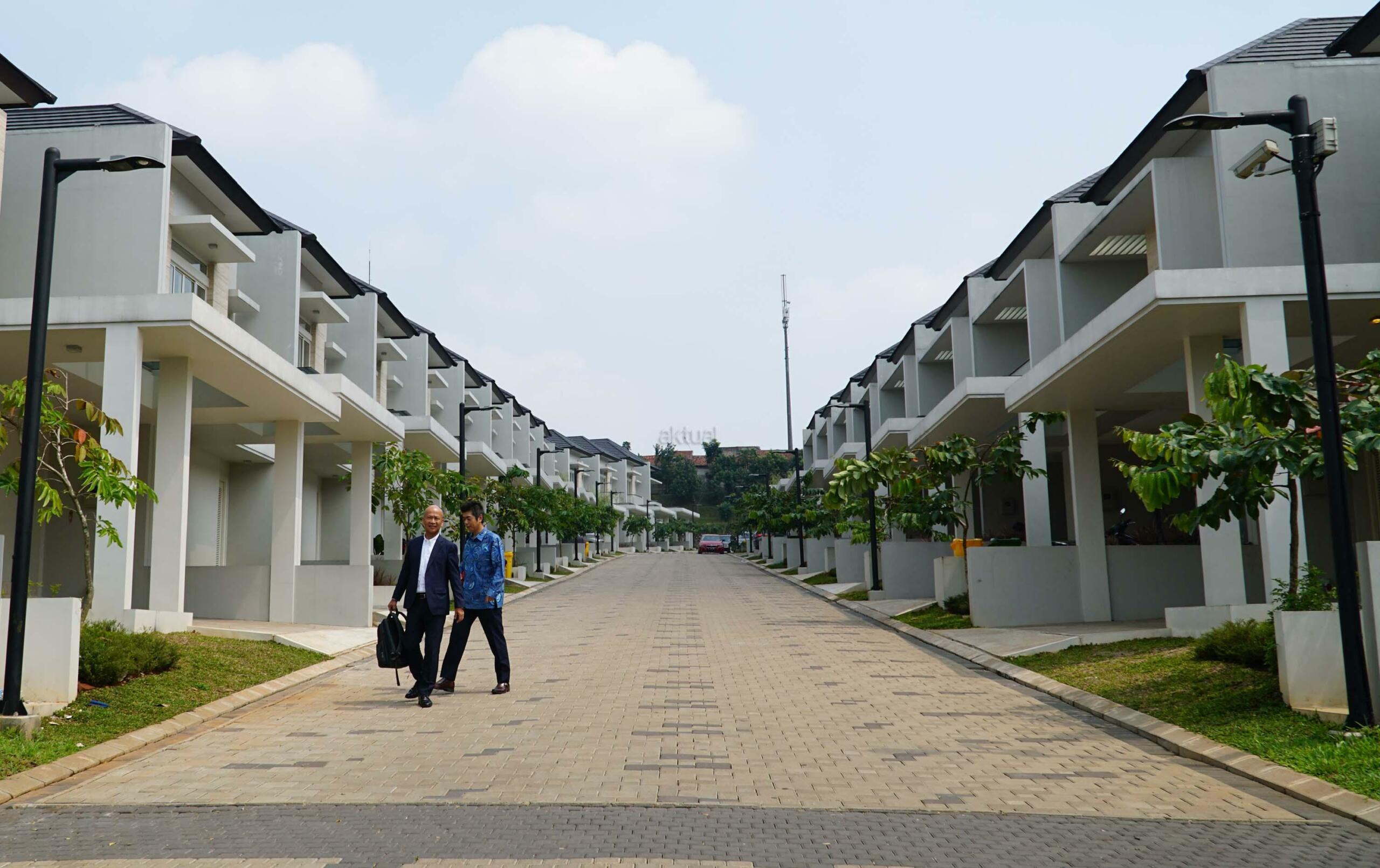 Executive Director Intiland Development,Utama Gondokusumo (tengah) dan Presiden Direktur Panasonic Gobel Indonesia, Hiroyoshi Suga (kanan) mendengarkan penjepasan Pimpinan Proyek Serenia Hills saat melakukan peninjauan lapangan seusai malakukan penandatangan naskah nota kesepahaman kerjasama atau MOU untuk mewujudkan konsep smart community di kawasan perumahan Serenia Hills, Jakarta Selatan, senin (24/7). Smart Community adalah sebuah konsep gagasan pengembangan sebuah kawasan hunian yang mengedepankan aspek pendayagunaan piranti dan infrastruktur teknologi yang dapat meningkatkan kenyamanan, keamanan, dan kemudahan serta ramah lingkungan ,hemat energi dan kemudahan akses berbasis mobile internet bagi penghuninya. Dalam kerja sama ini Panasonic menyediakan sistem dan piranti teknologi untuk smart home solution serta network & surveillance system pada seluruh unit unit rumah di klaster Quantum yang merupakan pengembangan terbaru di kawasan perumahan Serenia Hills.Serenia Hills merupakan sebuah kawasan perumahan seluas 26 hektar di jakarta selatan dan sudah mulai dikembangkan sejak tahun 2011. AKTUAL/Eko S Hilman