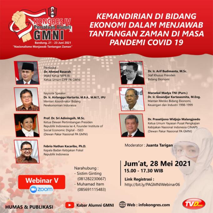 Demikian benang merah Webinar V Persatuan Alumni Gerakan Mahasiswa Nasional Indonesia (PA GMNI) bertajuk “Kemandirian di Bidang Ekonomi dalam Menjawab Tantangan Zaman di Masa Pandemi Covid-19”, Jumat (28/5). Webinar tersebut merupakan rangkaian Pra Kongres IV PA GMNI yang akan digelar di Bandung, Jawa Barat 21-23 Juni 2021.