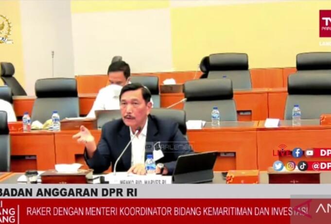 Tangkapan layar Menko Marves Luhut Binsar Pandjaitan dalam rapat kerja bersama Banggar DPR RI, Kamis (9/6/2022). ANTARA/Sanya Dinda.