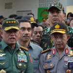 Kapolri Jenderal Tito Karnavian (kanan) bersama Panglima TNI Jenderal Gatot Nurmayanto (kiri) memberikan keterangan kepada wartawan usai melihat langsung dua teroris yang tewas tertembak di Palu, Sulawesi Tengah, Rabu (20/7). Kapolri memastikan bahwa salah satu dari dua jenazah yang tewas dalam kontak senjata di Poso pada Senin (18/7) adalah pimpinan Mujahidin Indonesia TImur (MIT) Santoso alias Abu Wardah, sedangkan satu jenazah lainnya adalah Mukhtar yang juga anggota Santoso. ANTARA FOTO/Basri Marzuki/ama/16