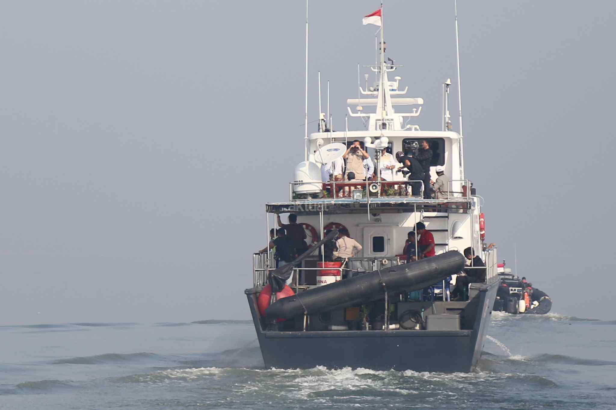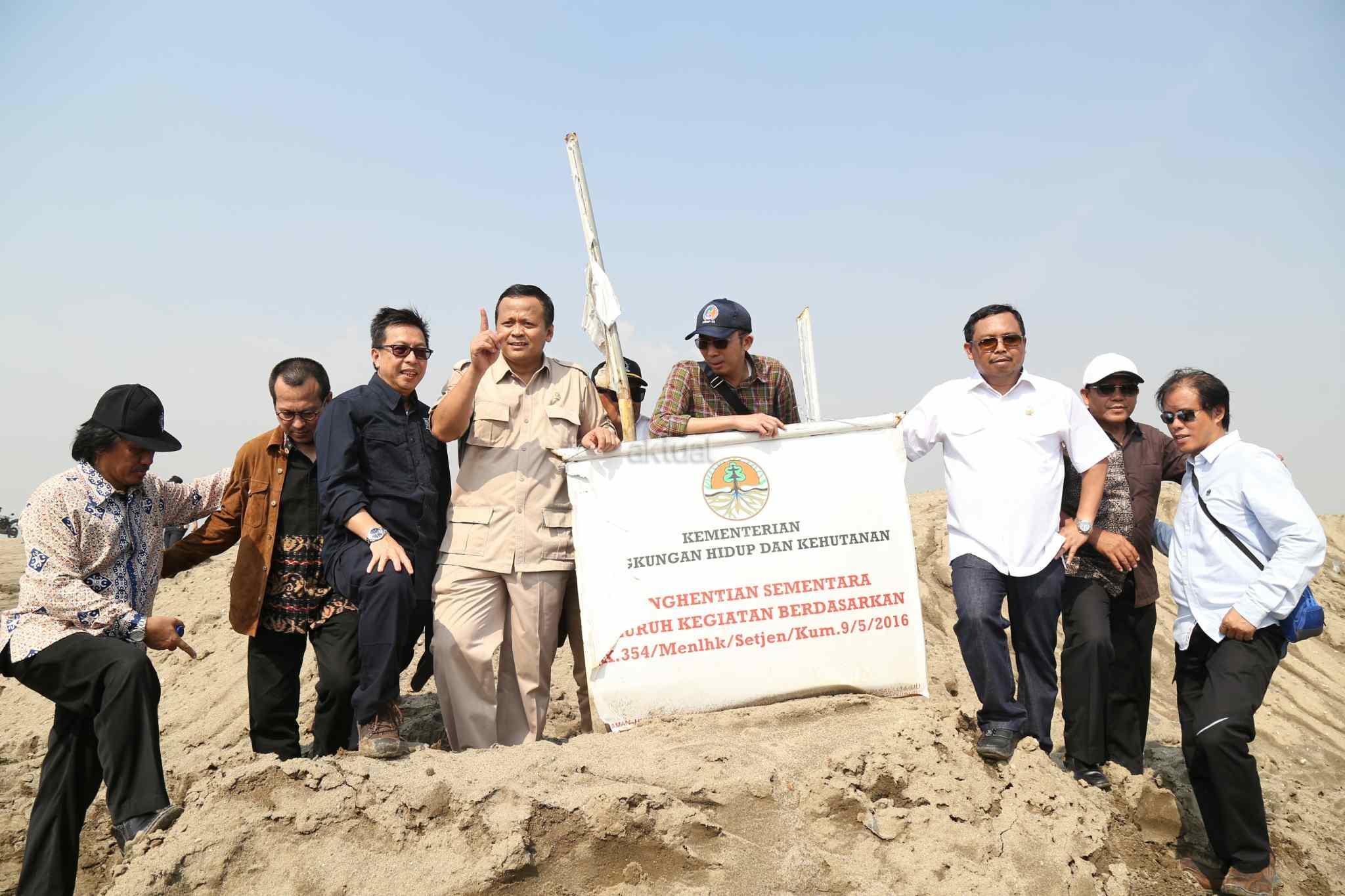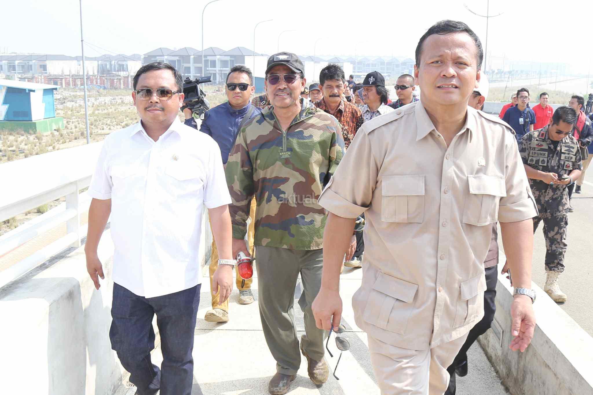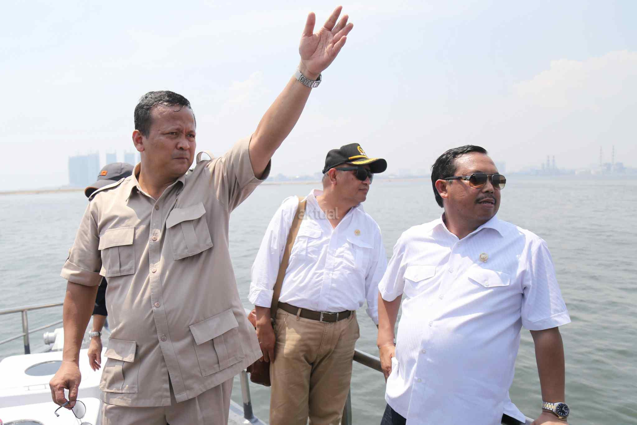 Ketua Komisi IV DPR RI Edhy Prabowo didampingi Wakil Ketua Komisi IV Herman Kheron dan Anggota lainnya meninjau pulau reklamasi di Teluk Jakarta, Jumat (24/3). Peninjauan ini sebagai bentuk kerja Komisi IV DPR RI yang telah membentuk panita kerja (Panja) reklamasi teluk Jakarta, untuk mengawasi agar tidak ada peraturan yang dilanggar dalam proyek tersebut juga bencana sosial dan lingkungan. AKTUAL/Tino Oktaviano