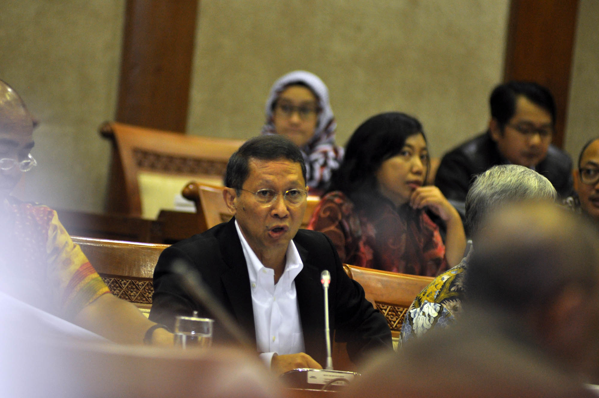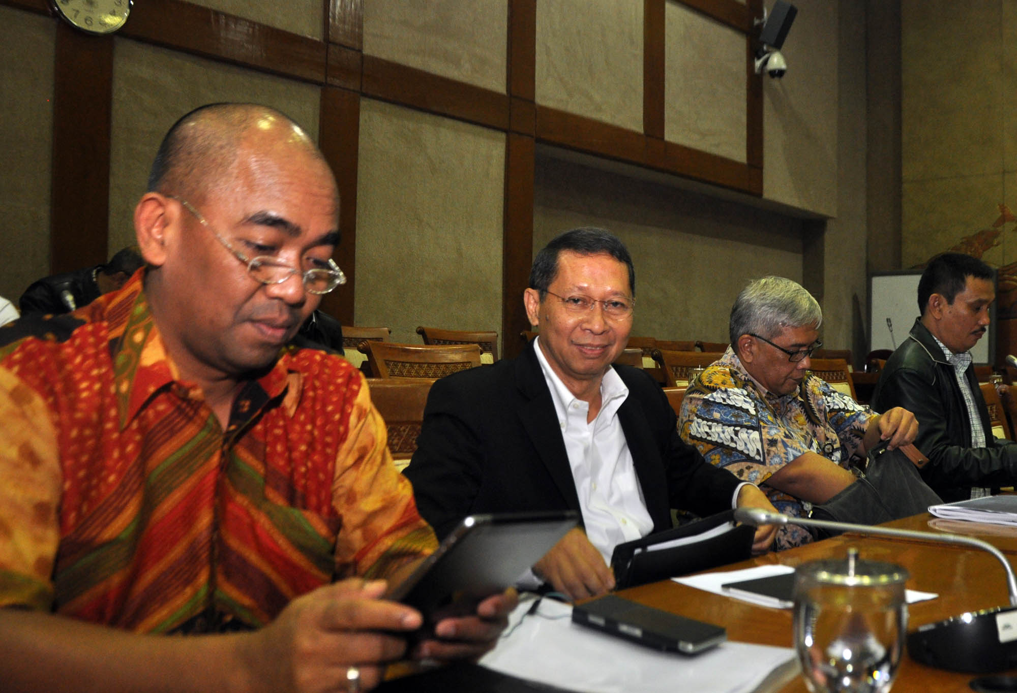 Dirut Pelindo II RJ Lino mengikuti rapat dengan panitia kerja (Panja) Pelindo II Komisi VI DPR di Kompleks Parlemen, Senayan, Jakarta, Rabu (16/9/2015). Rapat itu membahas perkembangan kasus hukum dugaan korupsi crane di Pelindo II.