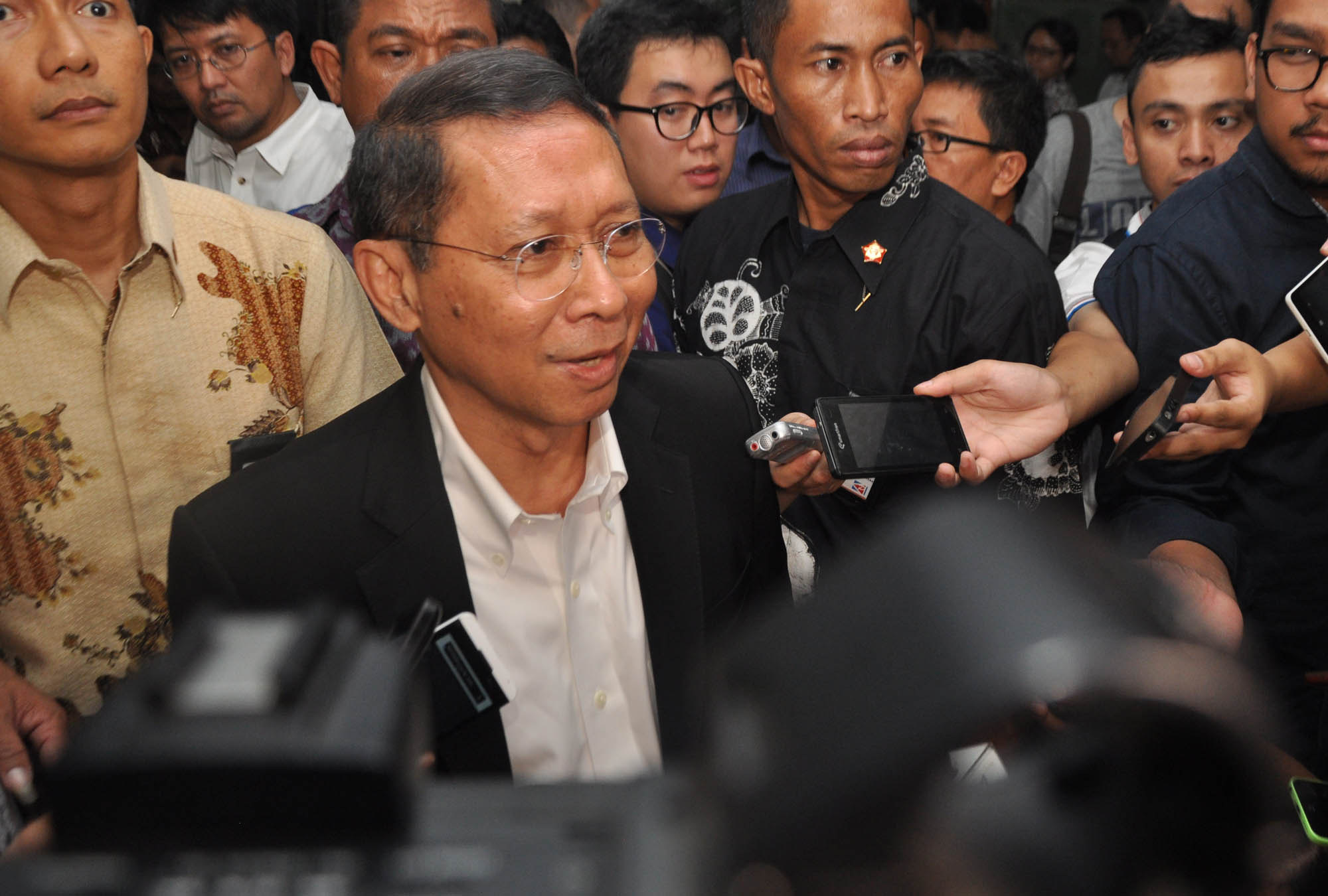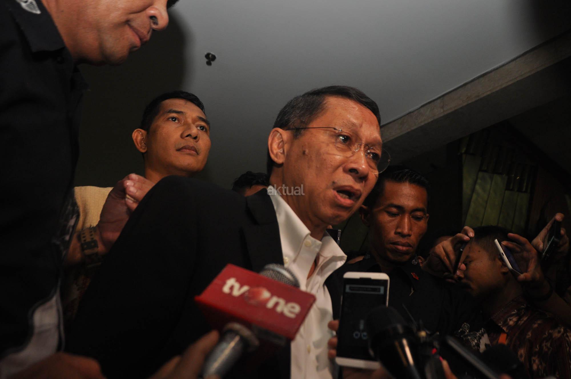 Dirut Pelindo II RJ Lino menjawab pertanyaan wartawan usai mengikuti rapat dengan panitia kerja (Panja) Pelindo II Komisi VI DPR di Kompleks Parlemen, Senayan, Jakarta, Rabu (16/9/2015). Rapat itu membahas perkembangan kasus hukum dugaan korupsi crane di Pelindo II.