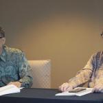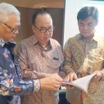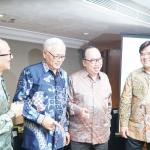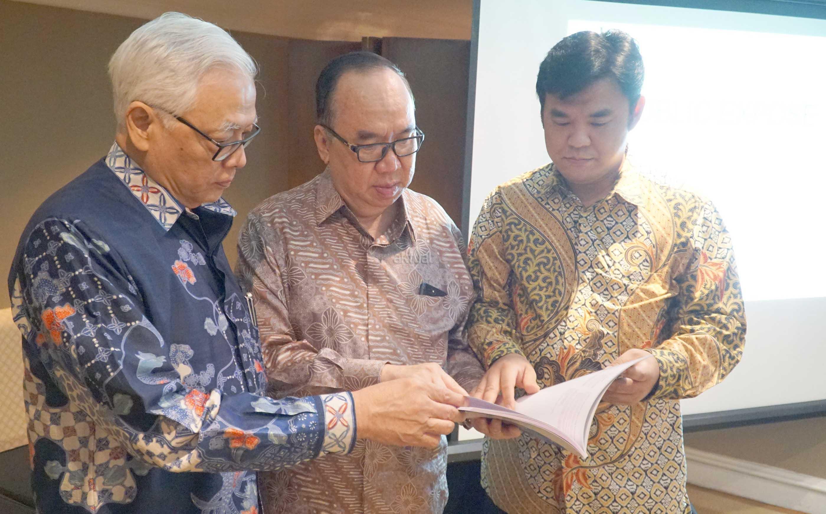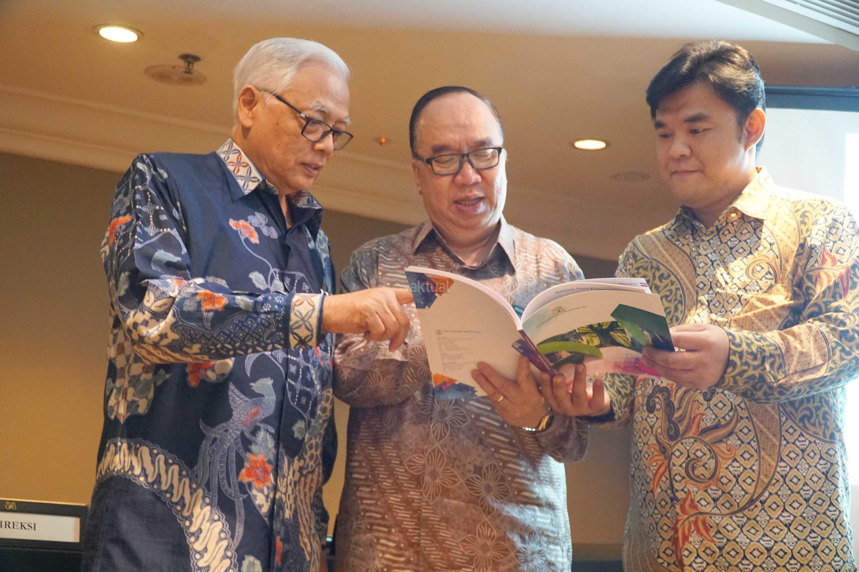 Direktur Utama PT Tirta Mahakam Resources Djohan Surja Putra (tengah) berbincang dengan Direktur Independen Tirta Mahakam Alan Budihardja kiri), dan Komisaris Independen Tirta Mahakam Pohan Wijaya Po (kanan) sebelum memulai Public Expose PT Tirta Mahakam Resources di Jakarta, Jumat (9/6/2017). Tirta Mahakam terus berupaya meningkatkan kualitas bahan baku untuk memenuhi tuntutan pasar akan produk yang bersertifikasi Forest Stewardship Council (FSC). Selama 2016, Tirta Mahakam telah meningkatkan penggunaan kayu sengon (falcatta) dalam produk-produk yang dihasilkannya selama ini. Selain itu, sebanyak 95 persen produk perusahaan diekspor sehingga walaupun mendapati banyak faktor penghambat namun hingga kuartal I 2017 masih mampu meraih penjualan sebesar Rp 185,5 miliar. AKTUAL/Eko S Hilman