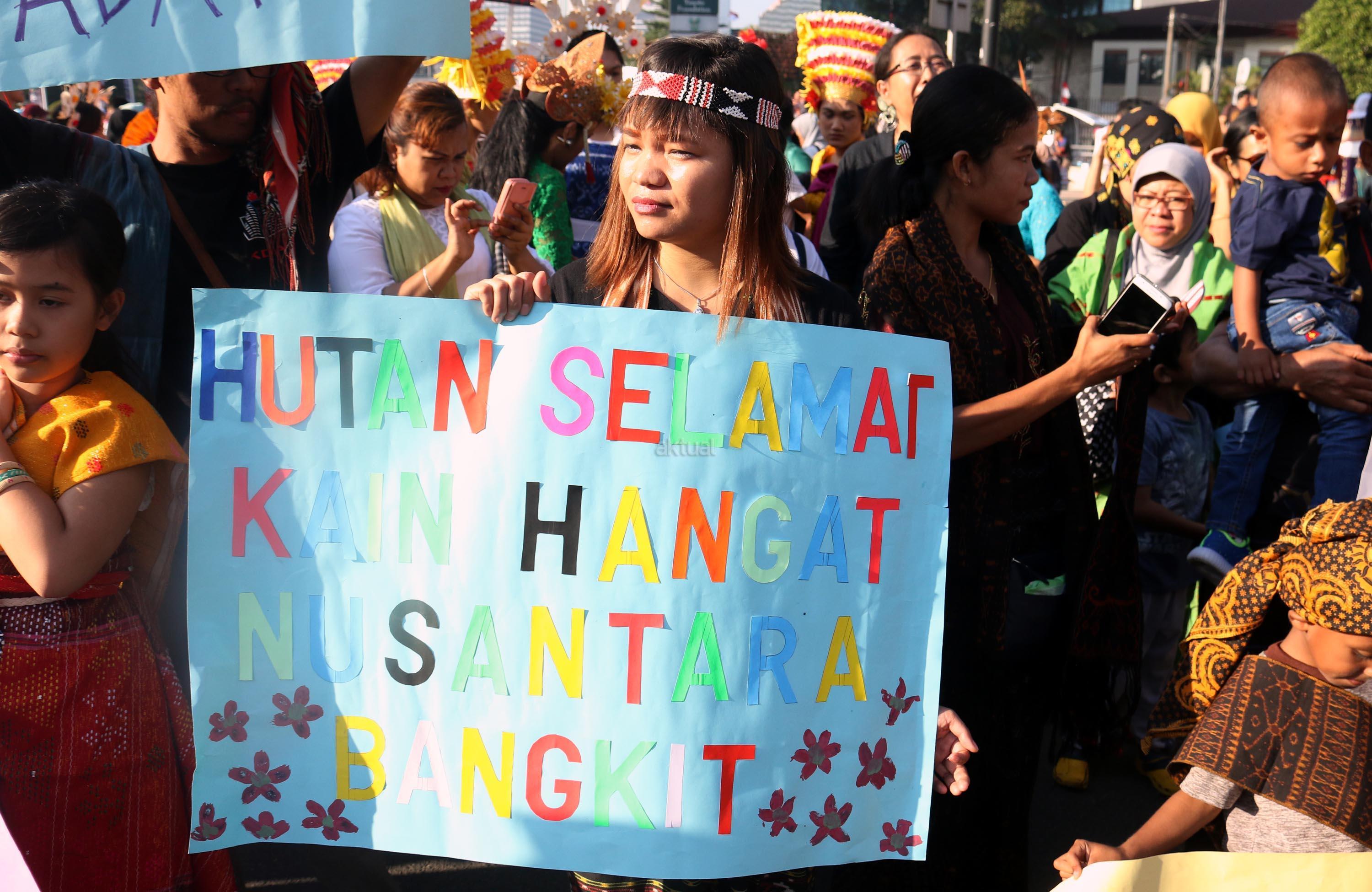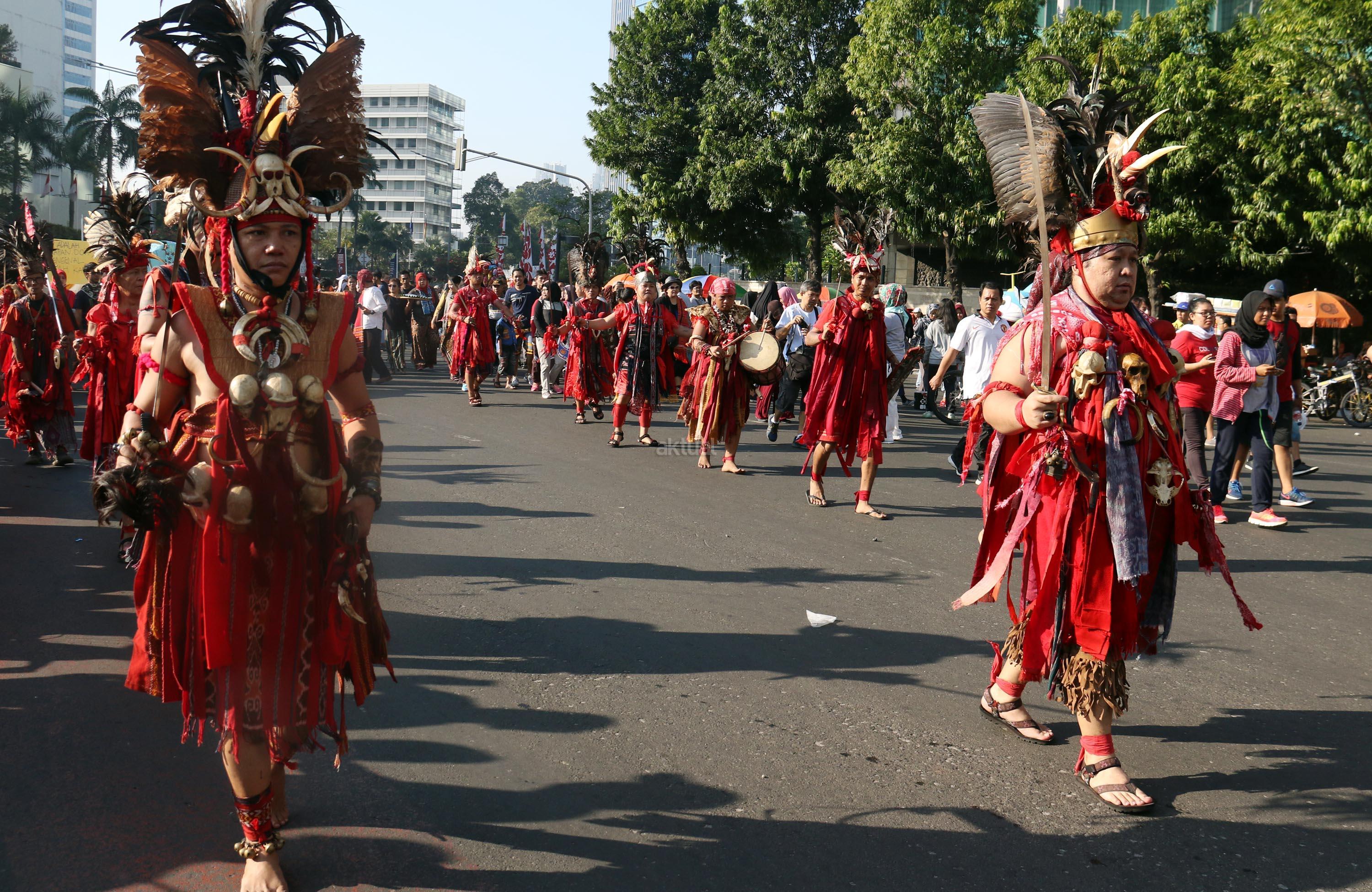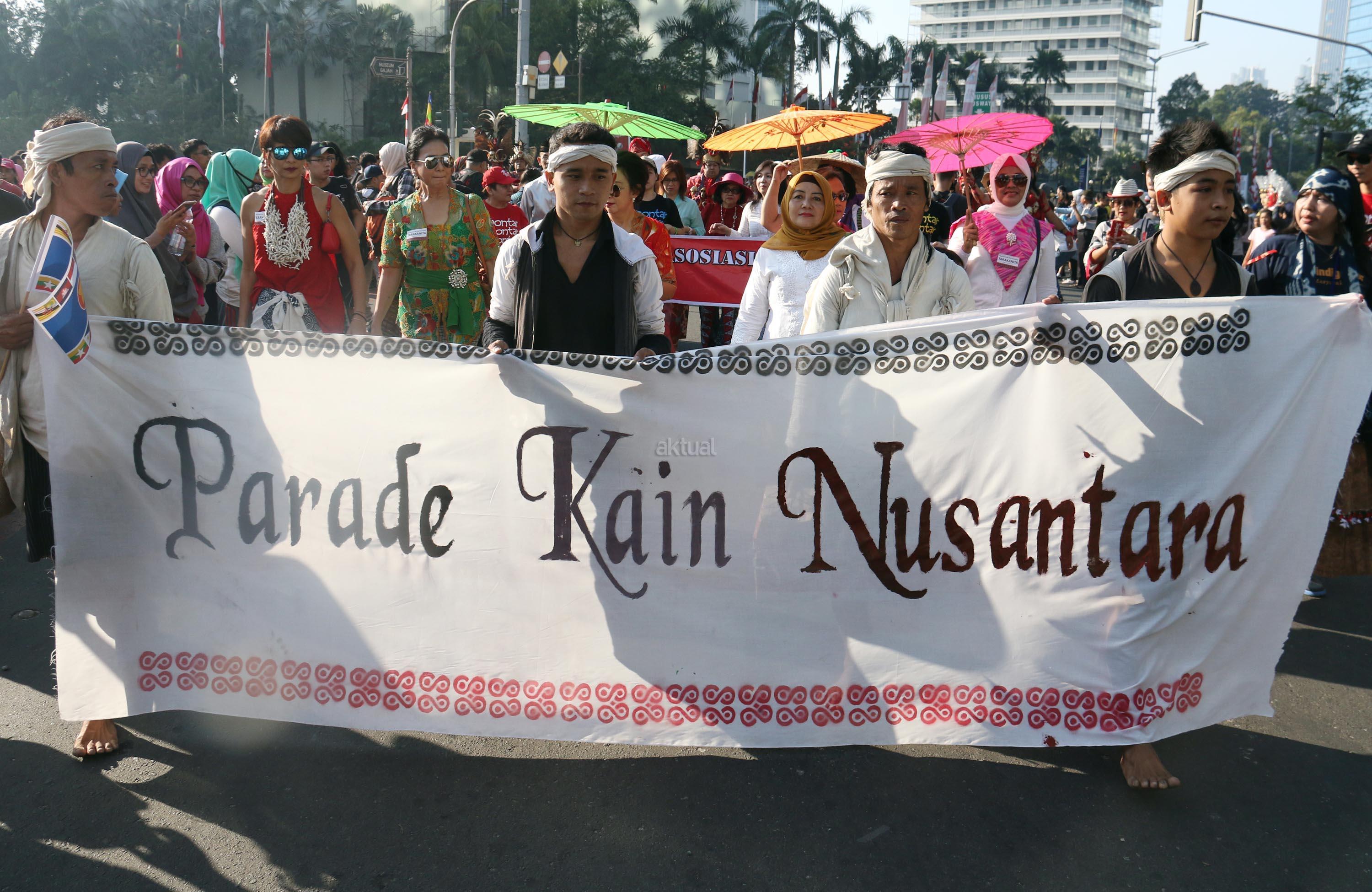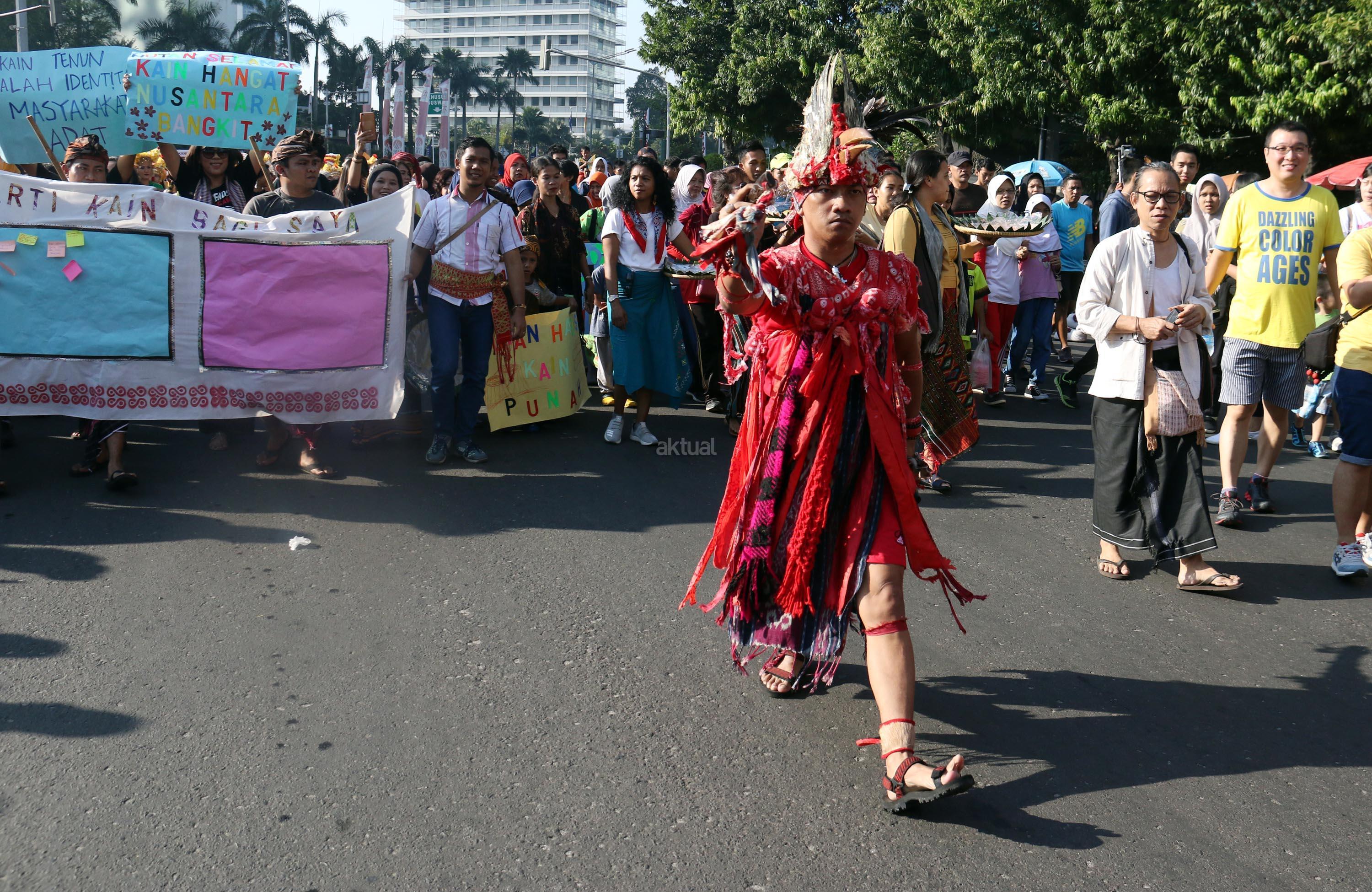 Parade Kain Nusantara meriahkan car free day di Bundaran HI. Rangkaian acara yang digelar oleh Aliansi Masyarakat Adat Nusantara (AMAN) bersama Kementerian Pendidikan dan Budaya (Kemendikbud) dan Komnas HAM ini untuk memperingati Hari International Masyarakat Adat Sedunia. AKTUAL/Munzir