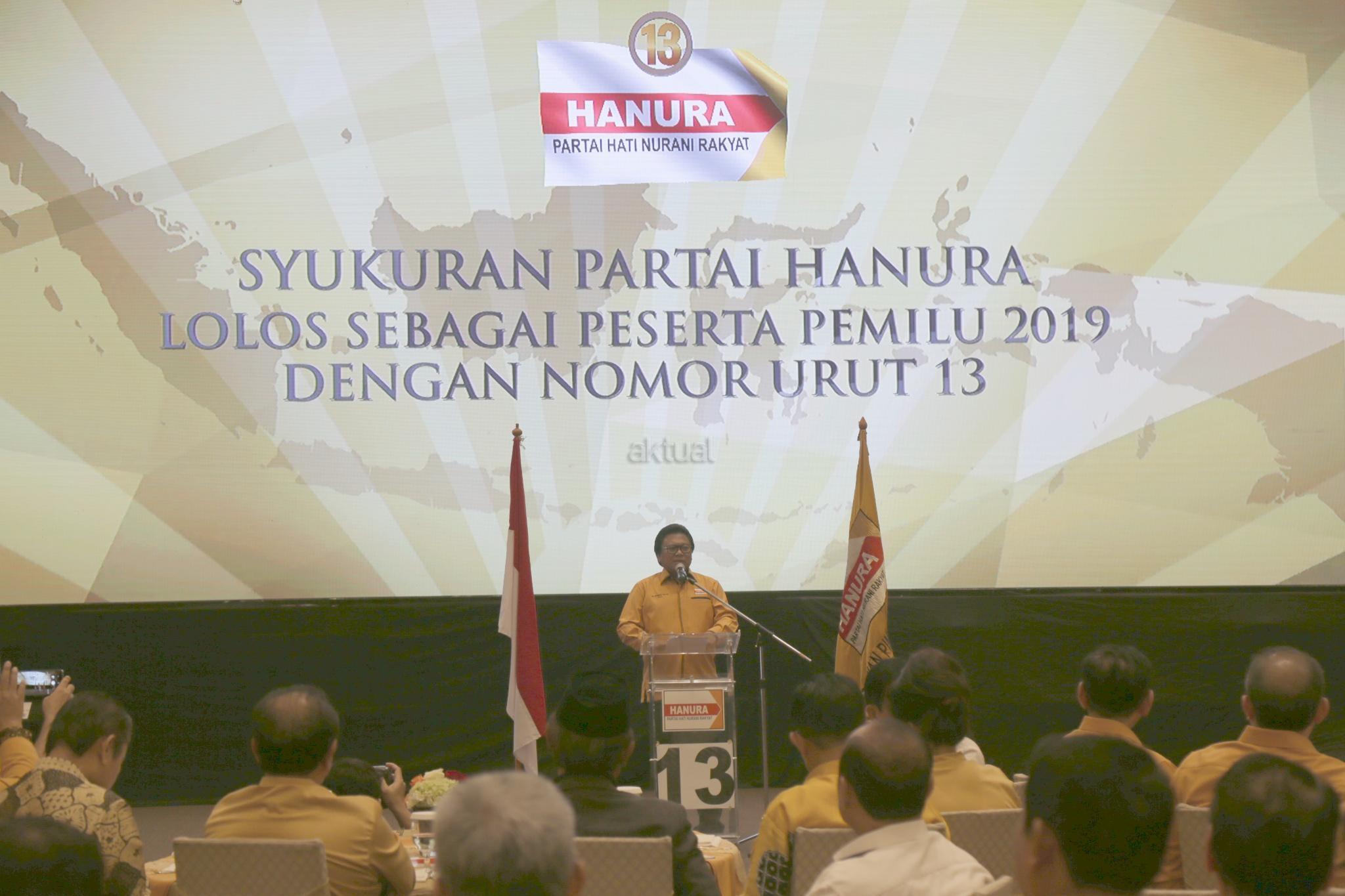 Ketua Umum Partai Hanura Oesman Sapta Odang (OSO), memberikan sambutan saat acara syukuran partai di kediaman OSO, Jalan Karang Asem Utara, Kuningan Timur, Jakarta Selatan, Kamis (22/2/2018). Partai Hanura resmi mencalonkan Wiranto sebagai calon wakil presiden di Pilpres 2019, yang disampaikan langsung oleh Ketum Hanura Oesman Sapta Odang. AKTUAL/Tino Oktaviano