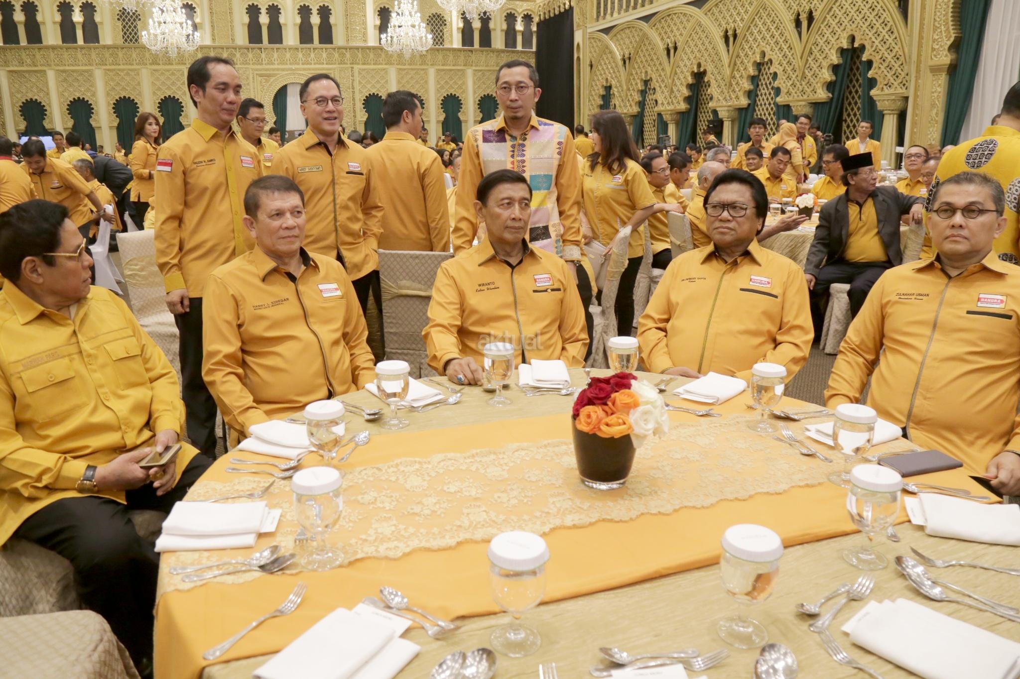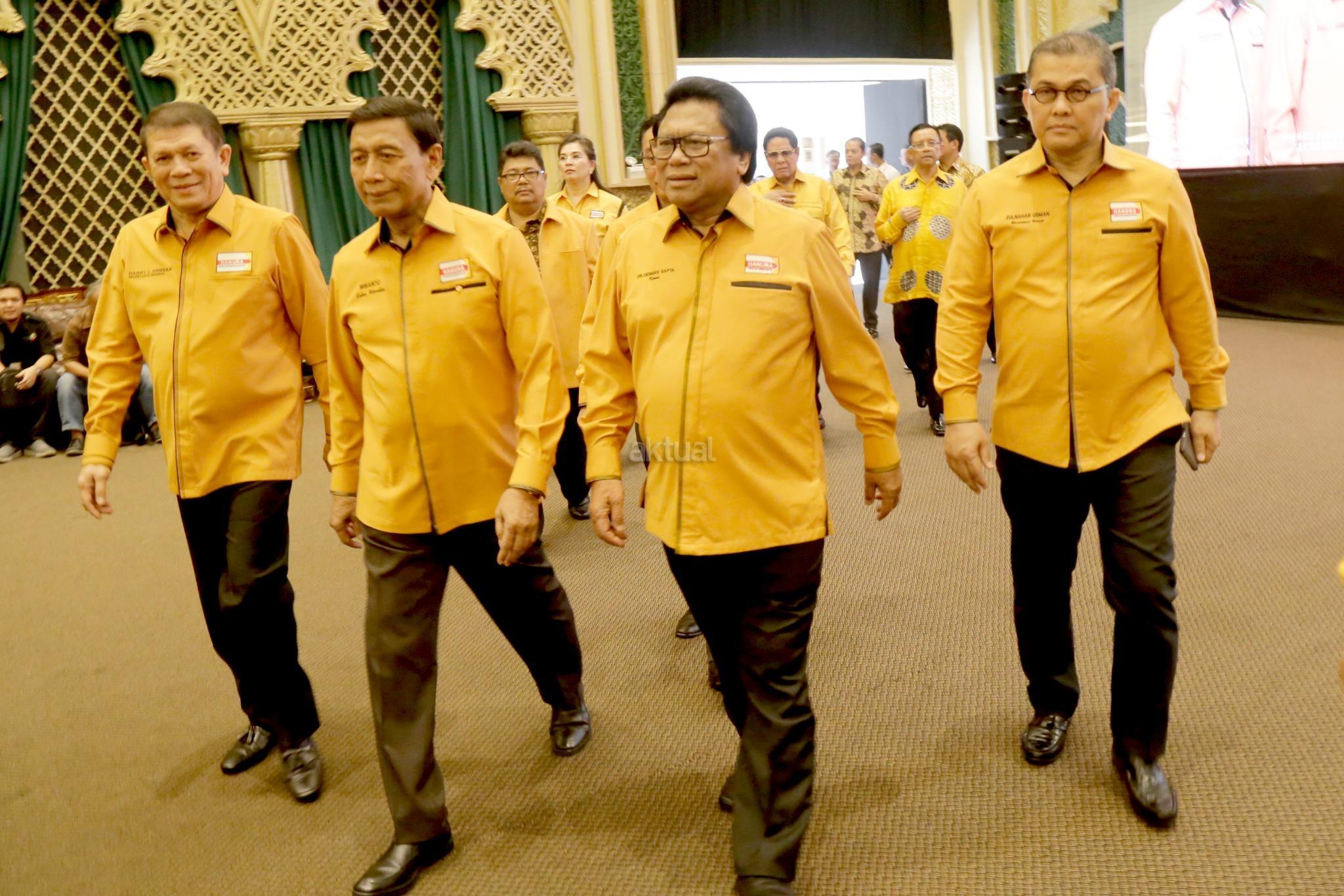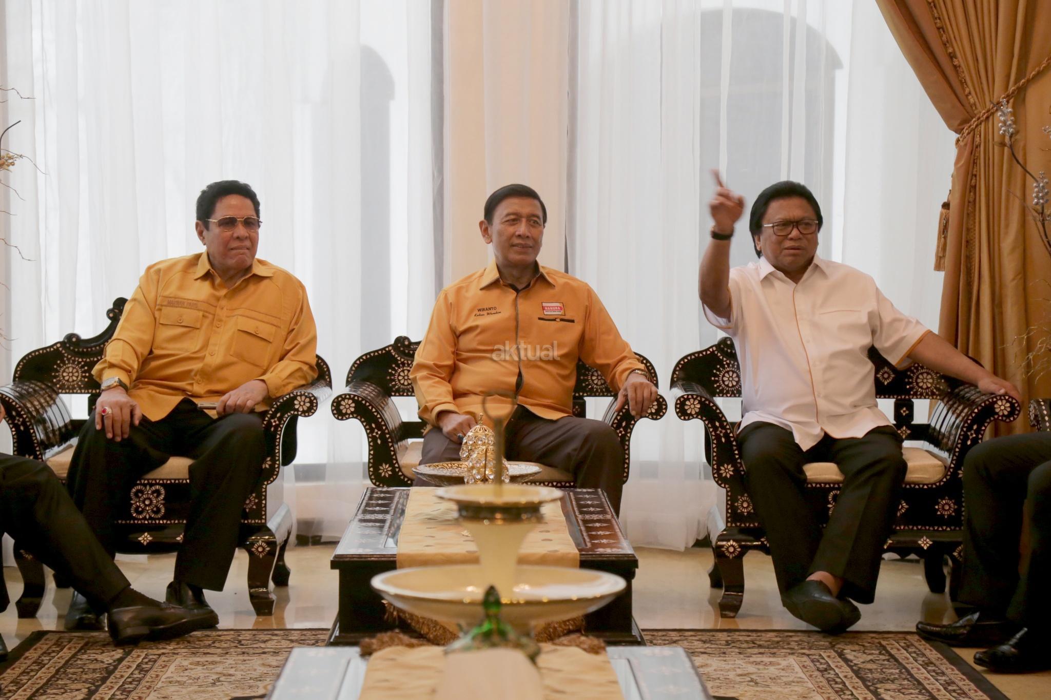 Ketua Umum Partai Hanura Oesman Sapta Odang (OSO), Ketua Dewan Pembina Partai Hanura Wiranto dan Sekjen Partai Hanura Herry Lontungsebelum saat acara syukuran partai di kediaman OSO, Jalan Karang Asem Utara, Kuningan Timur, Jakarta Selatan, Kamis (22/2/2018). Partai Hanura resmi mencalonkan Wiranto sebagai calon wakil presiden di Pilpres 2019, yang disampaikan langsung oleh Ketum Hanura Oesman Sapta Odang. AKTUAL/Tino Oktaviano