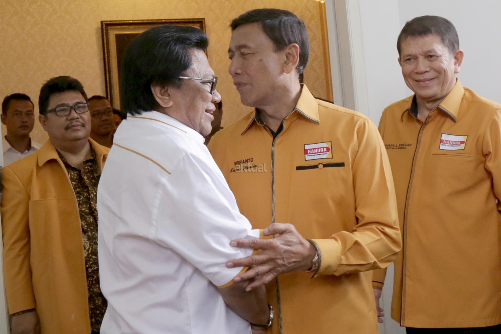 Ketua Umum Partai Hanura Oesman Sapta Odang (OSO), Ketua Dewan Pembina Partai Hanura Wiranto acara syukuran partai di kediaman OSO, Jalan Karang Asem Utara, Kuningan Timur, Jakarta Selatan, Kamis (22/2/2018). Partai Hanura resmi mencalonkan Wiranto sebagai calon wakil presiden di Pilpres 2019, yang disampaikan langsung oleh Ketum Hanura Oesman Sapta Odang. AKTUAL/Tino Oktaviano