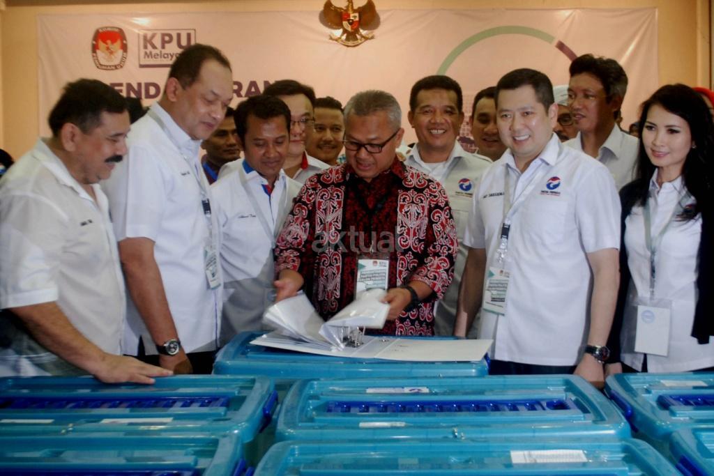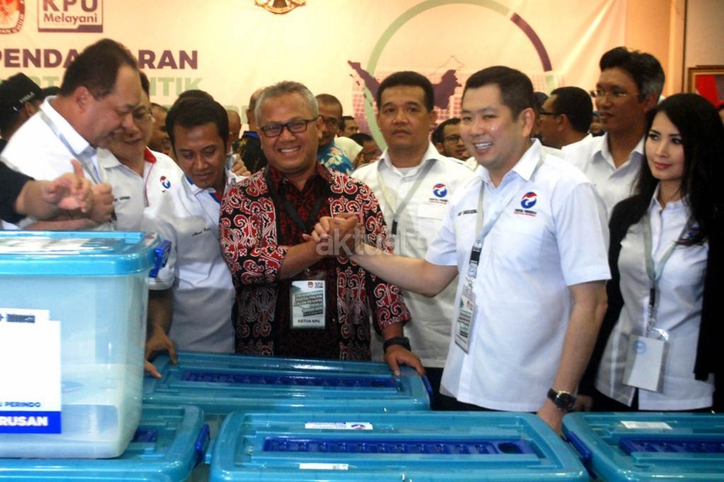 Partai Persatuan Indonesia (Perindo) secara resmi mendaftarkan diri sebagai peserta Pemilu 2019 ke KPU dan pendaftaran langsung dipimpin oleh Ketum Perindo Hary Tanoesoedibjo (HT). AKTUAL/Munzir