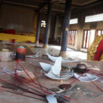 Suasana Vihara Tri Ratna pasca kerusuhan yang terjadi di Tanjung Balai, Sumatera Utara, Sabtu (30/7). Kerusuhan yang terjadi di Tanjung Balai pada Jumat (29/7) menyebabkan sejumlah vihara dan kelenteng rusak. ANTARA FOTO/Anton/im/nz/16