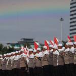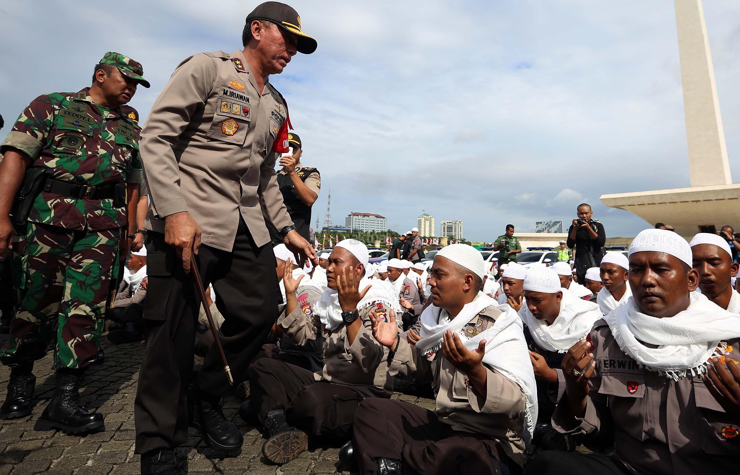 Kapolda Metro Jaya Irjen Pol Mochamad Iriawan melihata persiapan pasukan Asmaul Husna berdoa saat mengikuti apel gelar pasukan pengamanan aksi bela Islam jilid III (212) di Monas, Jakarta, Kamis (1/12/2016). Sebanyak 3.539 aparat gabungan dikerahkan untuk mengamankan aksi 212 yang diisi dengan kegiatan zikir dan doa. AKTUAL/Munzir