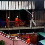 Petugas pemadam kebakaran berjibaku melakukan pemadaman di Pasar Senen, Jakarta Pusat, Kamis (19/1/2017). Kebakaran yang terjadi di Blok III Pasar Senen itu berasal dari api yang timbul dari lantai satu dini hari tadi. AKTUAL/Munzir