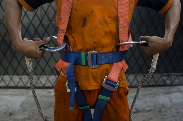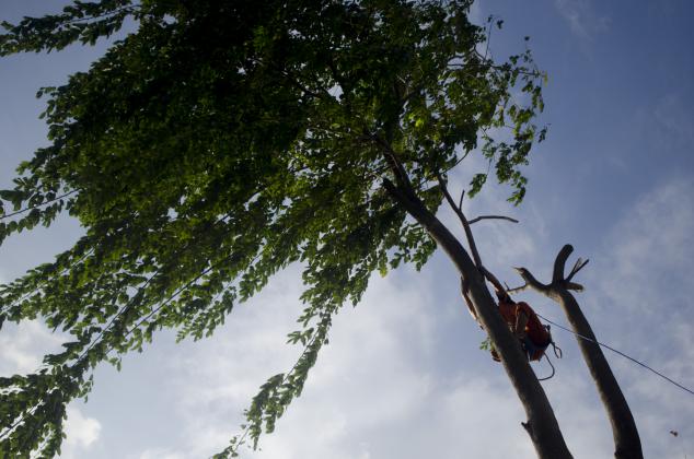 Perlengkapan petugas sebelum melakukan pemangkasan pohon di Jakarta, Sabtu (28/5). ANTARA FOTO/Sahrul Manda Tikupadang/16.