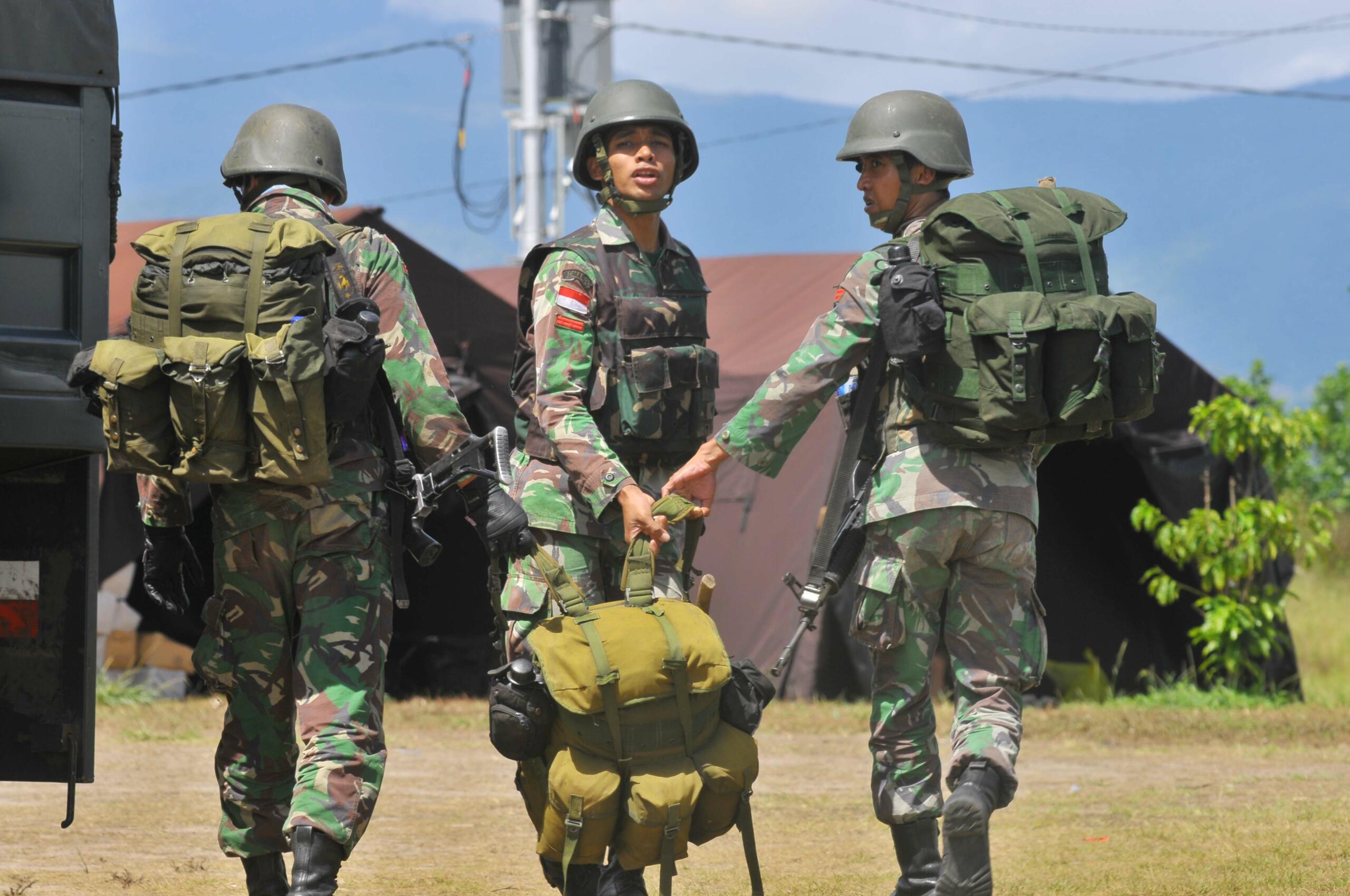 Sejumlah anggota TNI bersiap untuk melakukan penyisiran kolompok sipil bersenjata Santoso di Watutau, Lore Peore, Poso, Sulawesi Tengah, Rabu (23/3). Penyisiran tersebut merupakan operasi Tinombala yang kini diarahkan ke daerah Sedoa, Lore Utara, Poso setelah ditemukan dua anggota kelompok sipil bersenjata tewas ketika kontak senjata. ANTARA FOTO/Fiqman Sunandar/ama/16