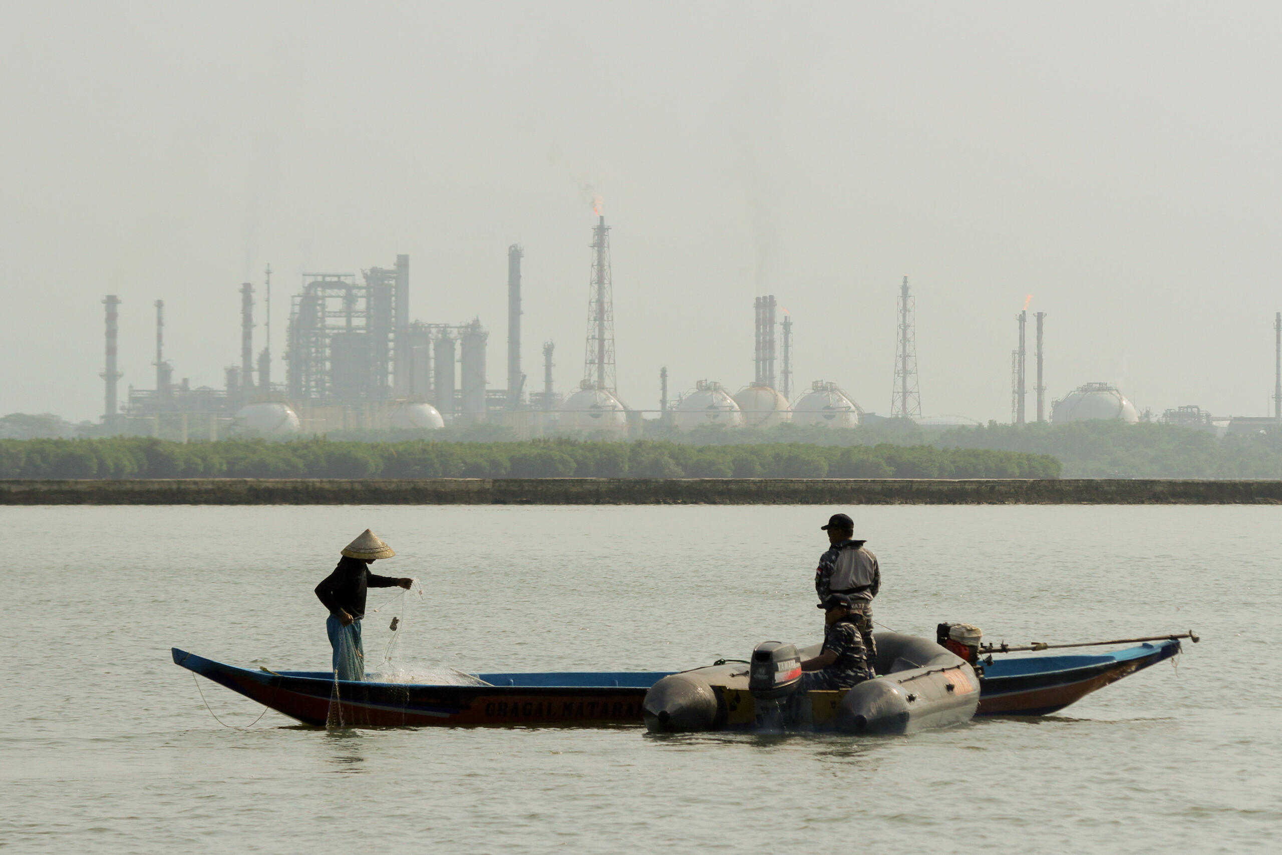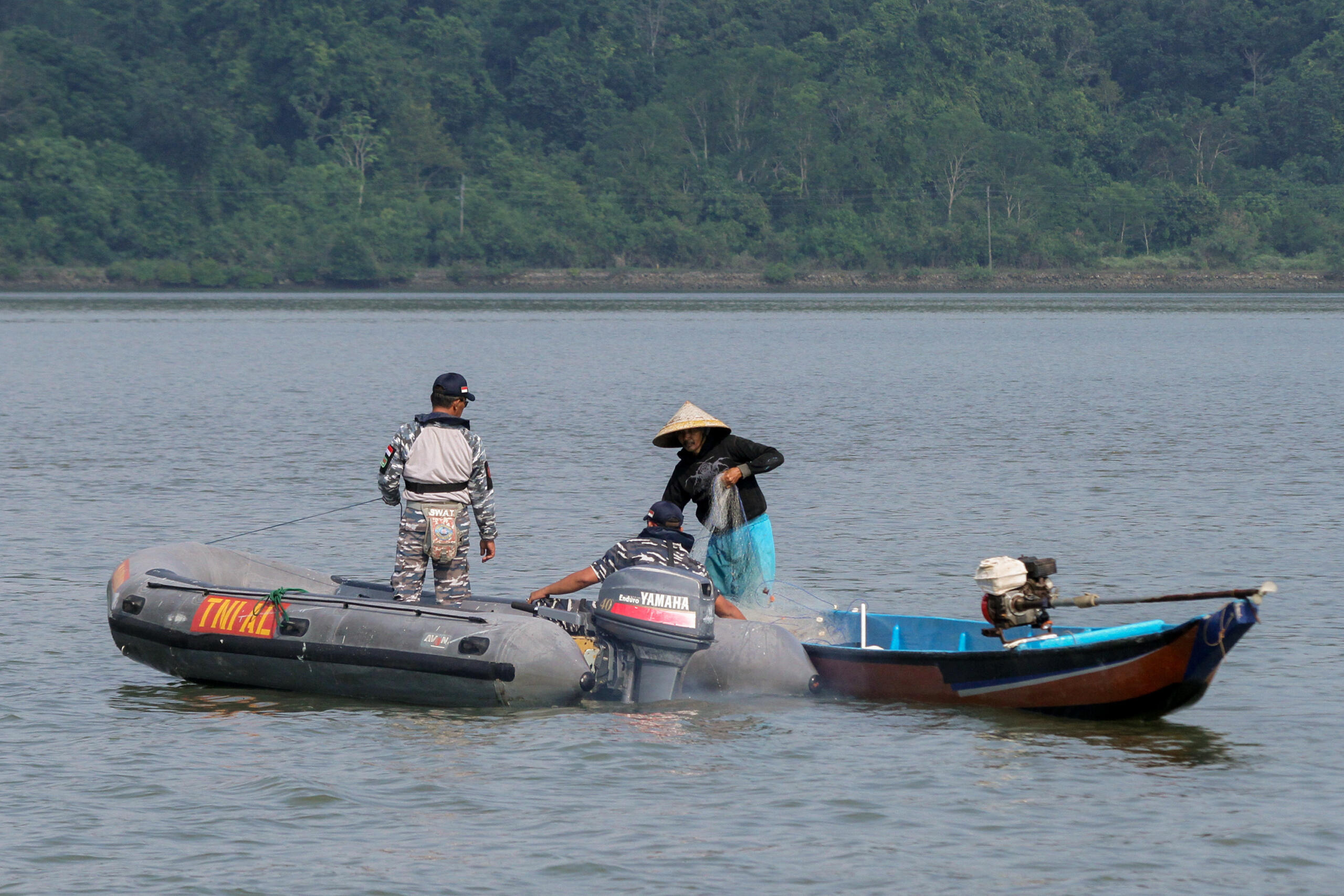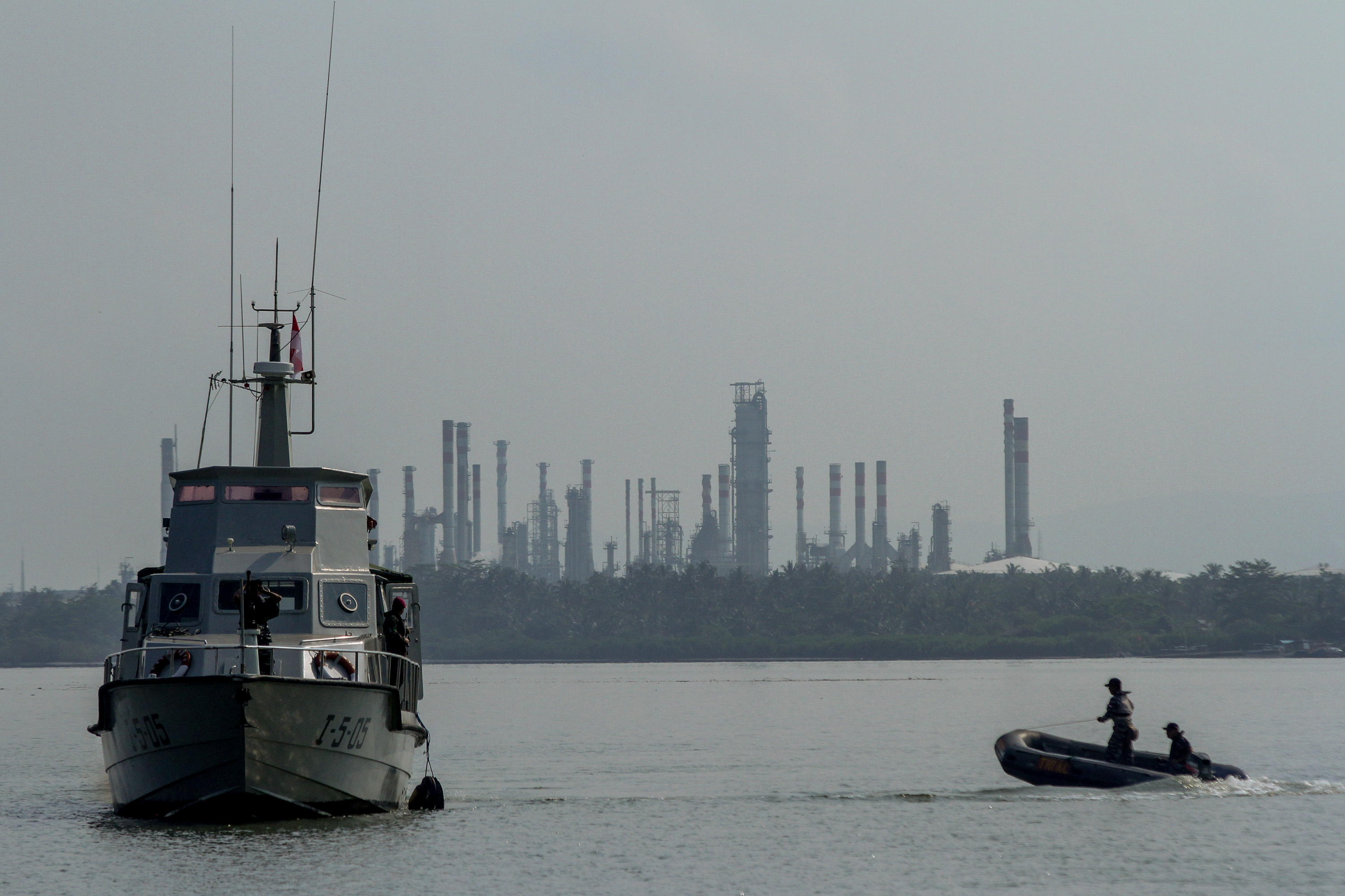 Personel TNI AL melakukan patroli di sekitar perairan Pulau Nusakambangan, Cilacap, Jateng, Kamis (28/7). Menjelang pelaksanaan eksekusi mati tahap ke III, petugas gabungan dari TNI AL dan Polri melakukan pengamanan di sekitar wilayah perairan nusakambangan. ANTARA FOTO/Idhad Zakaria/pras/16.