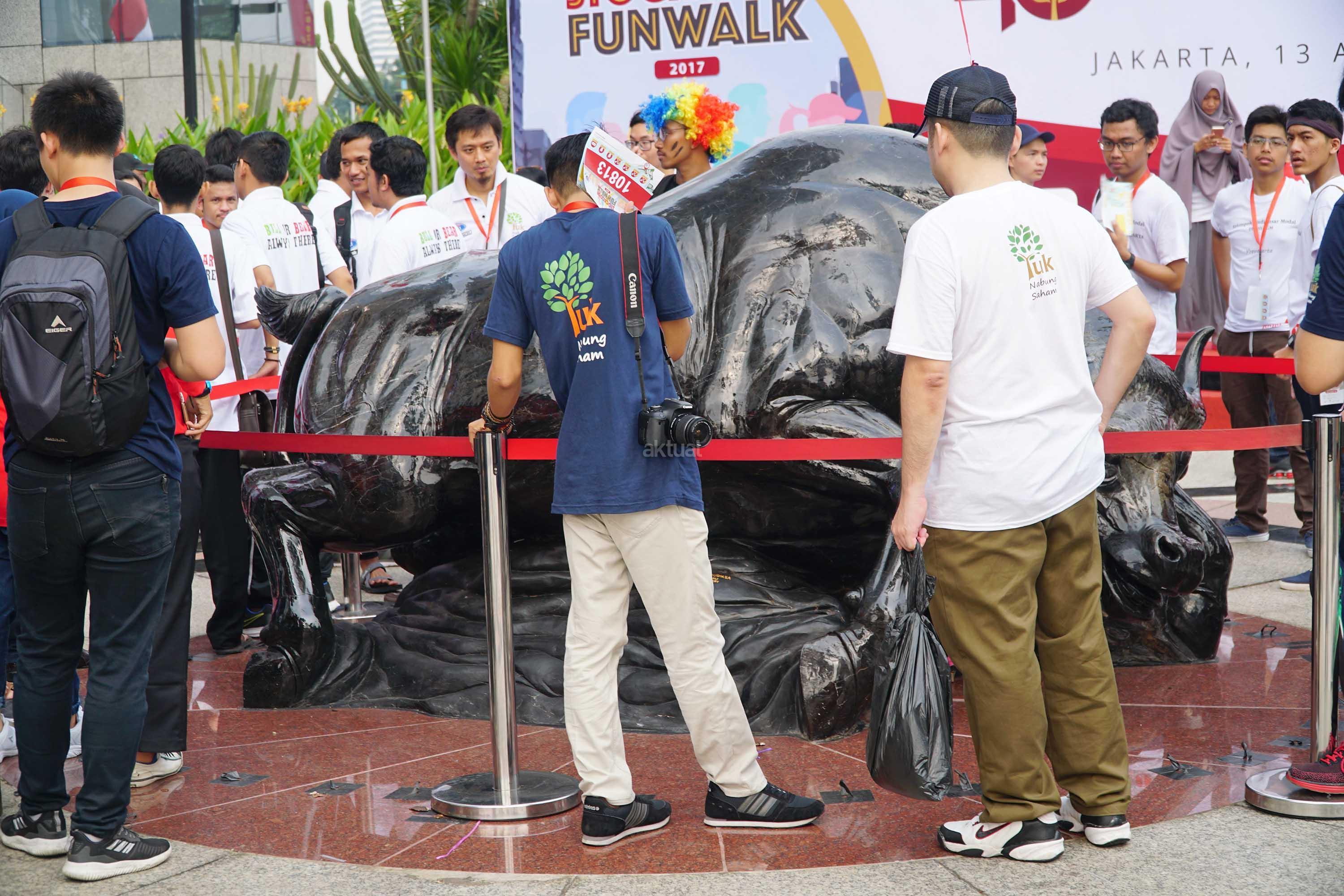 Banteng Wulung, patung yang terbuat dari fosil kayu merupakan ikon bursa saham yang artinya bullish atau naik. Dengan begitu, diharapkan pasar modal Indonesia pergerakannya terus naik. Patung Banteng Wulung dengan berat kurang lebih 7 ton ini didatangkan langsung dari pulau Dewata, Bali. AKTUAL/Eko S Hilman