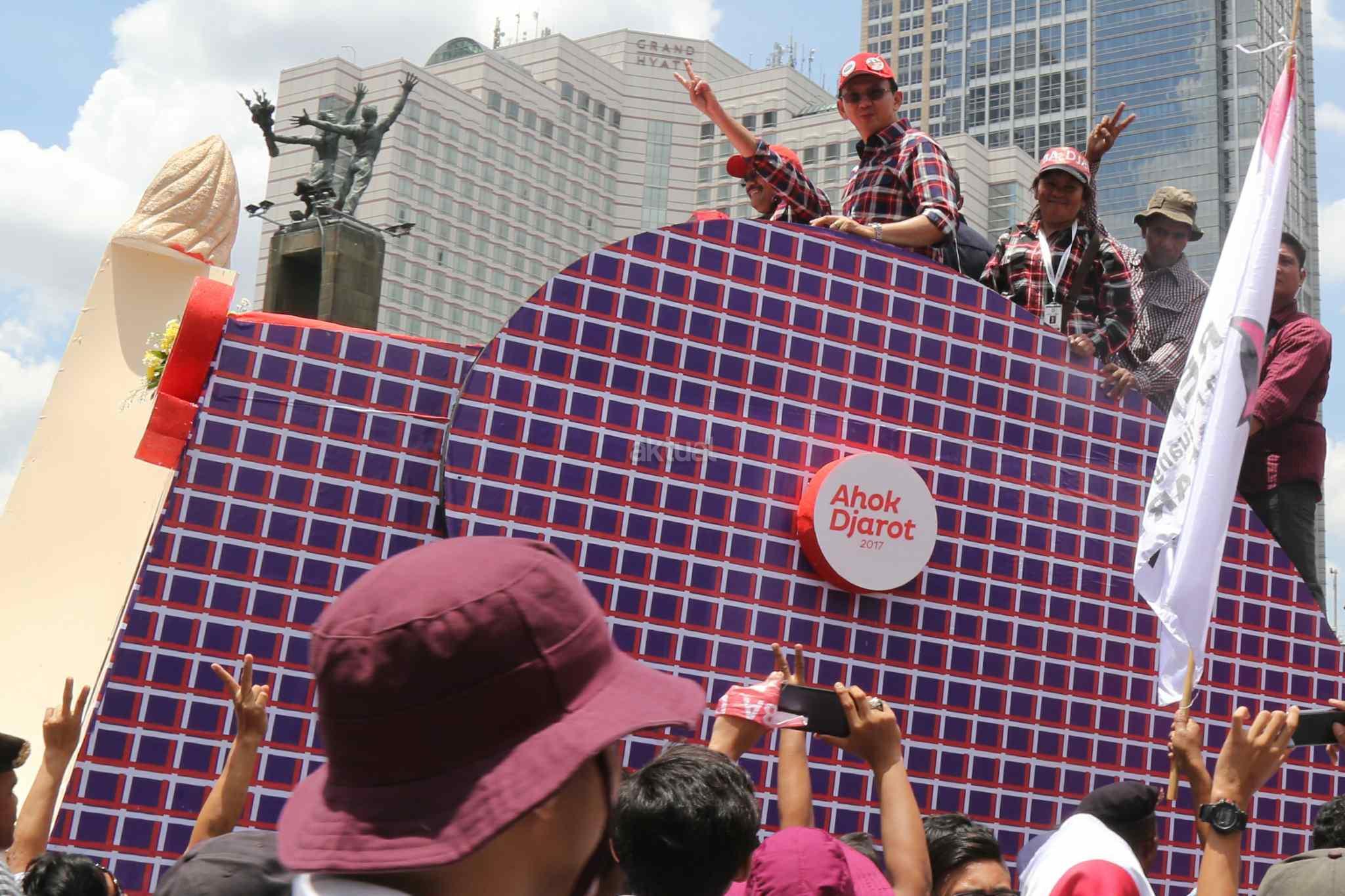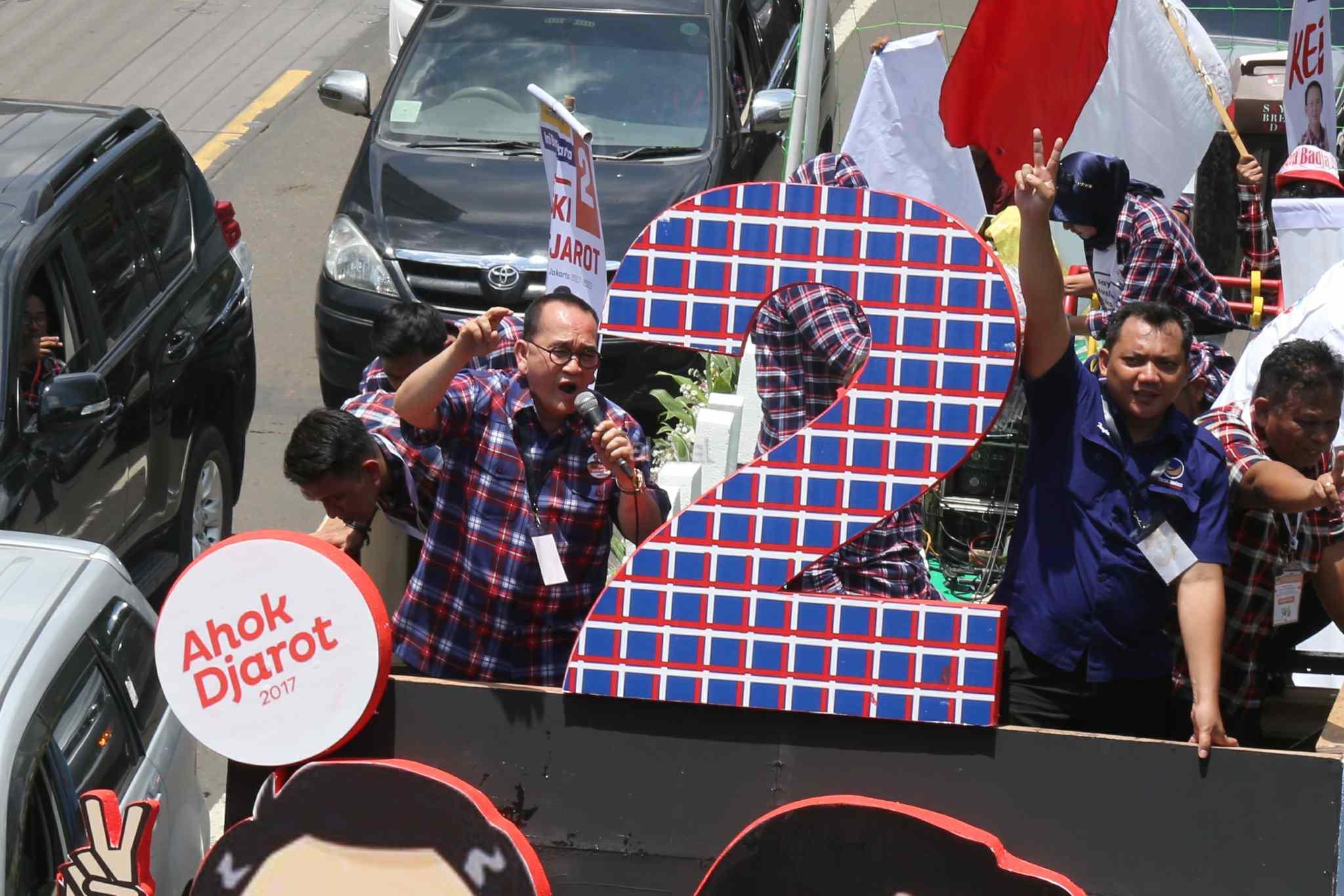 Pendukung Pasangan Calon Gubernur dan Wakil Gubernur DKI Jakarta, Basuki Tjahja Purnama (Ahok) – Djarot Saiful Hidayat saat mengikuti pawai kampanye damai.