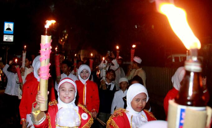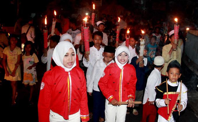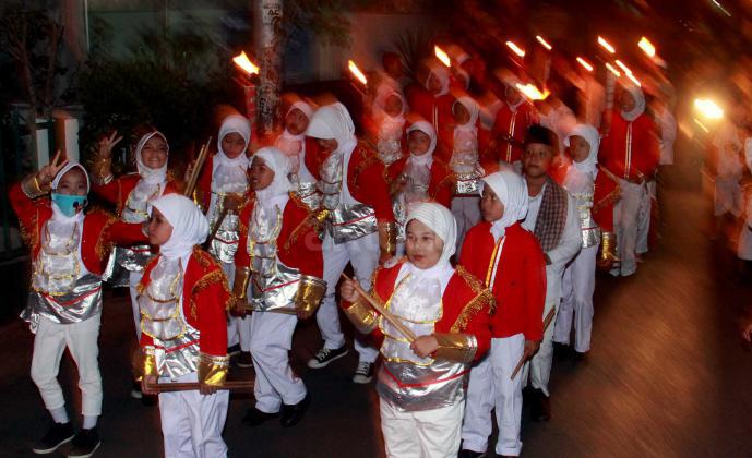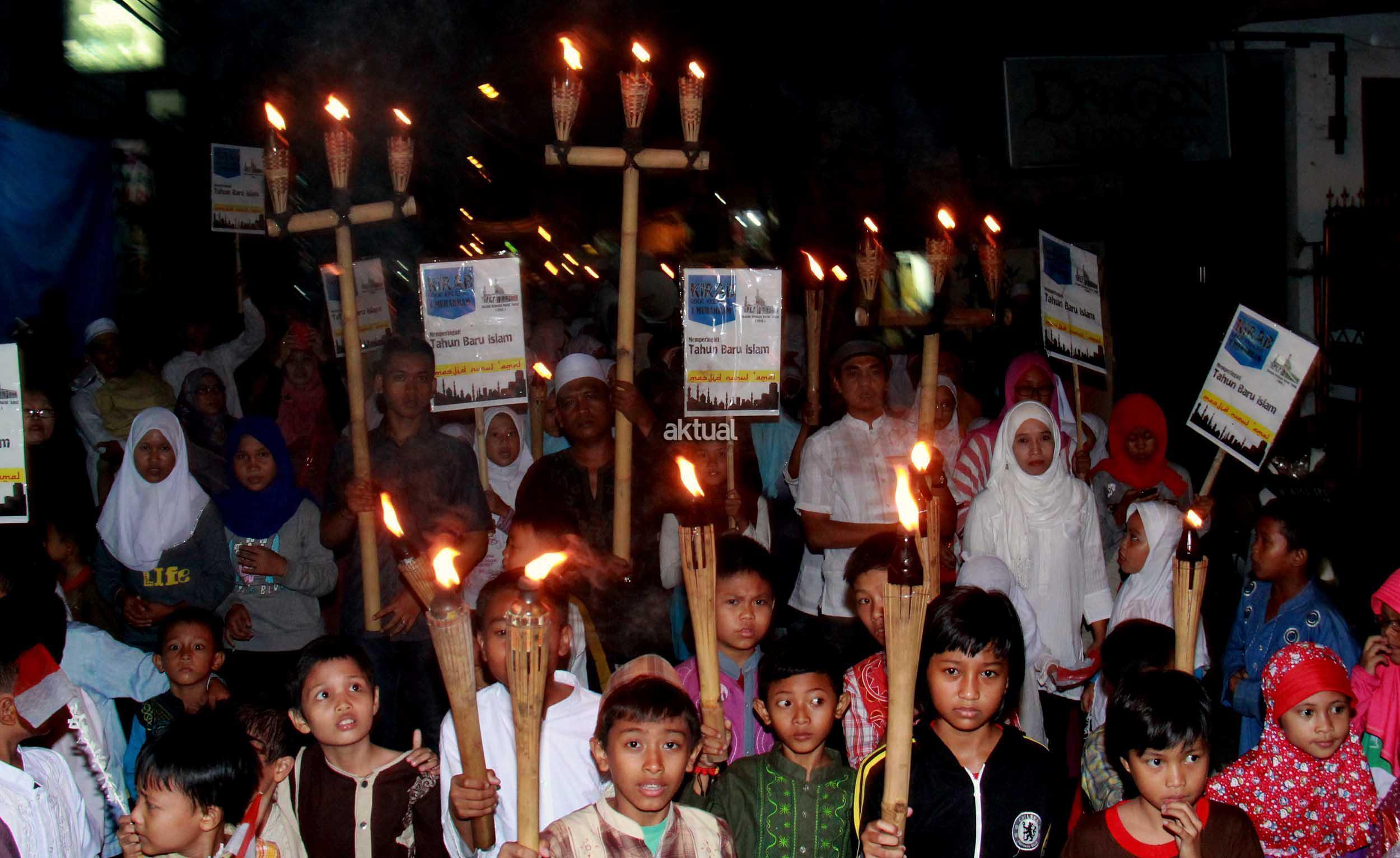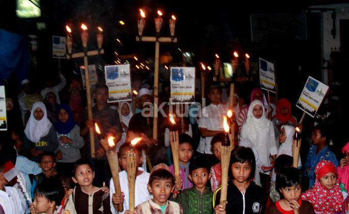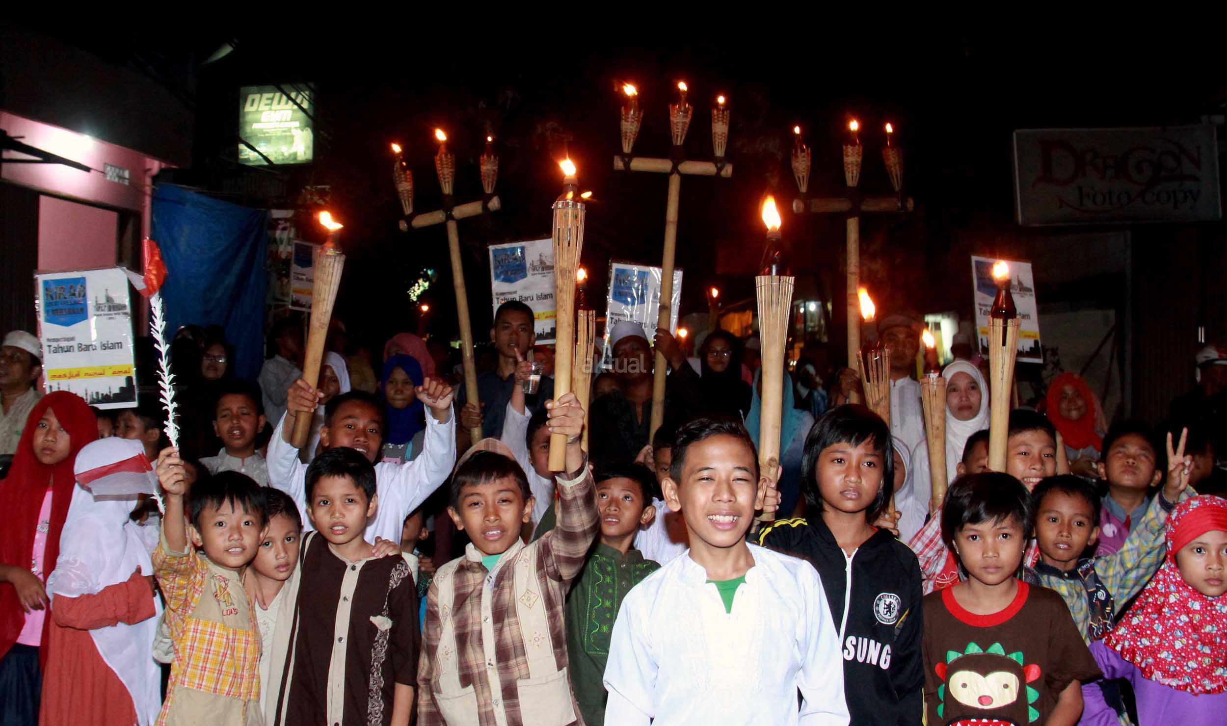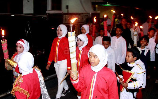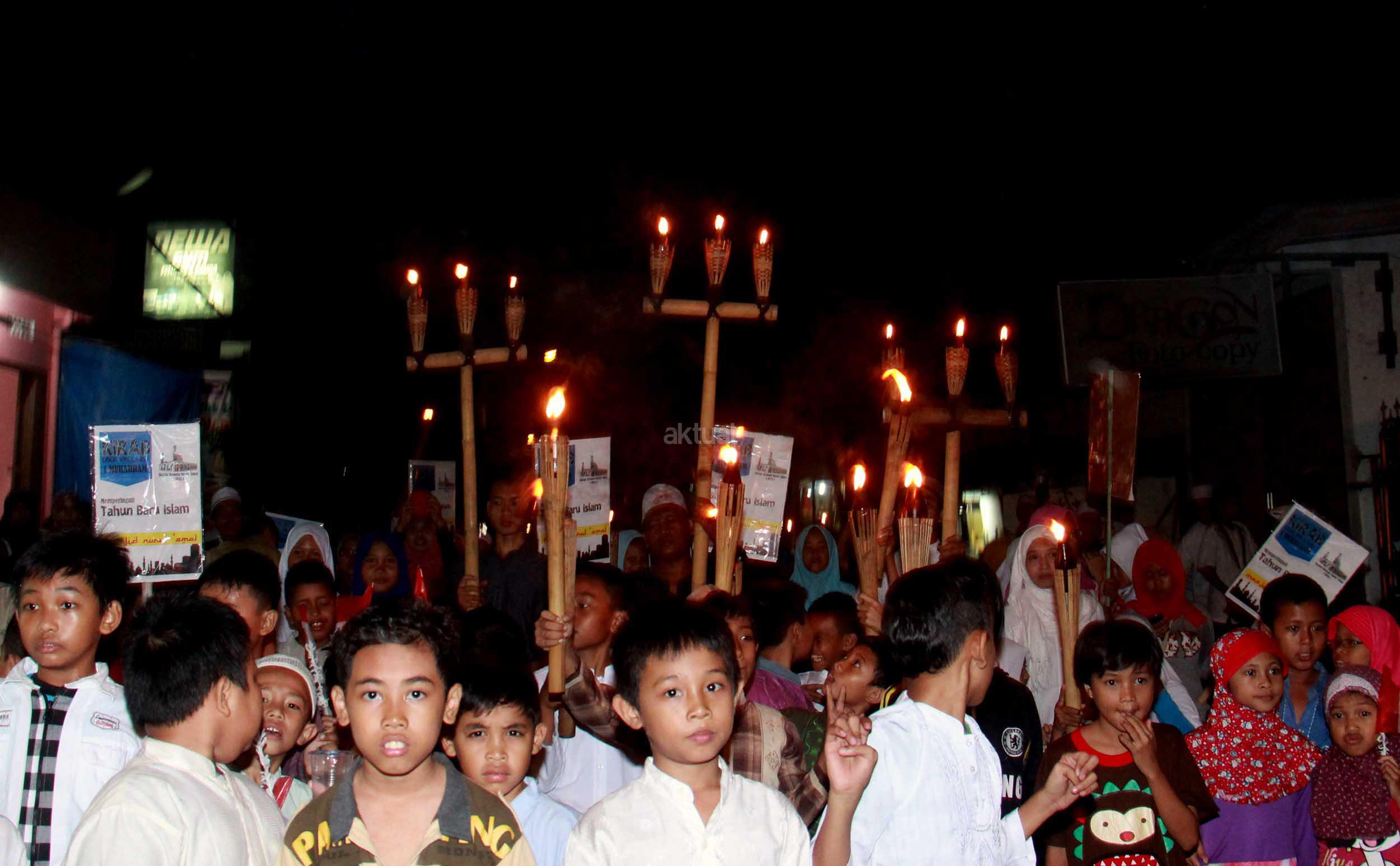 Pawai Obor dalam menyambut 1 Muharram 1437 Hijriah diramaikan oleh anak-anak sambil membawa obor dan tabuh-tabuhan untuk memeriahkan 1 Muharram 1437 Hijriah.